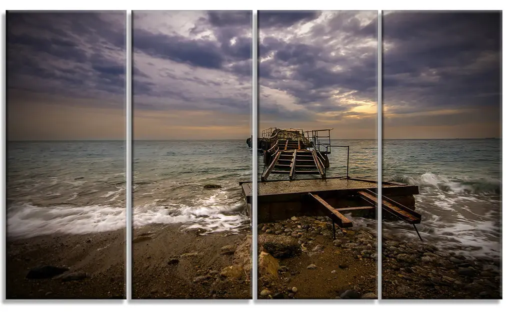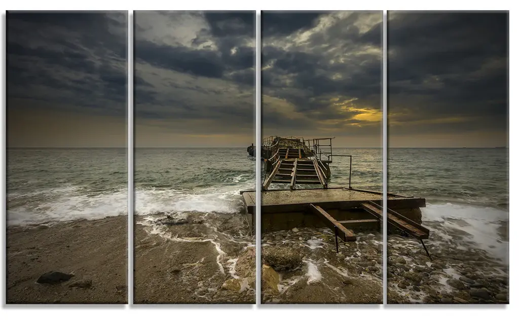The Abandoned Pier into Blue Sea canvas art print is sure to make an impression on anyone who sees it. This artwork is gallery wrapped around a 1-inch solid wood frame and arrives carefully packaged and entirely ready to hang on the wall. Design Art only uses the highest resolution and pigments to ensure a crisp colorful print that is never faded or pixelated. This artwork is sure to be a conversation starter in any home or office.