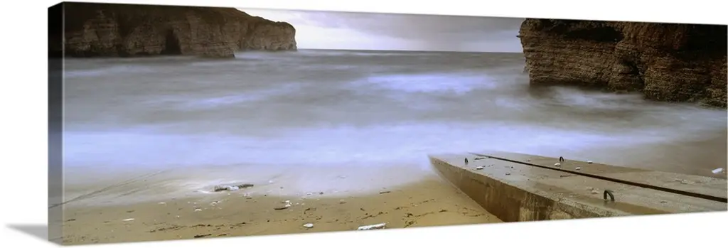 "Abandoned Pier Into Blue Sea" Sea Bridge Canvas Wall Artwork, 32"x16"