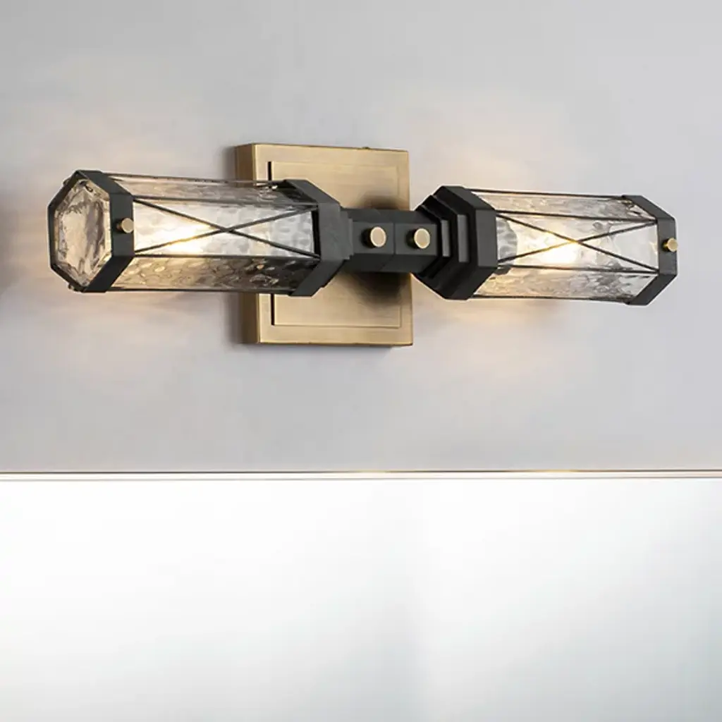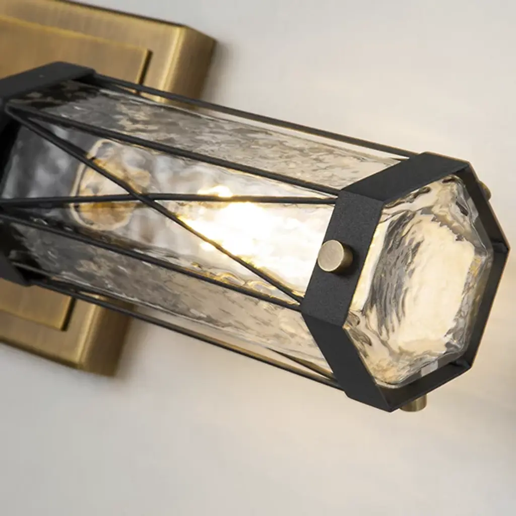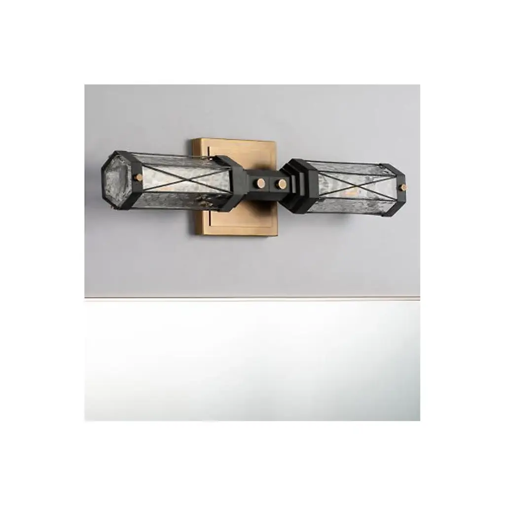 The Abbey Bath Vanity from Lucas McKearn holds one’s attention as a vintage-inspired piece crafted with genuine, edgy motifs. Offering many mounting options, the piece’s stepped backplate features a compact square shape. The eyes are mesmerized by the hexagonal shapes stacking from one side to the other. Accented with X-shaped lines, the hexagonal framework contains a water-glass interior that shimmers from inch to inch. Light eases through the glass, giving one a generous, comfortable glow.