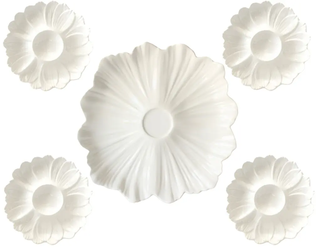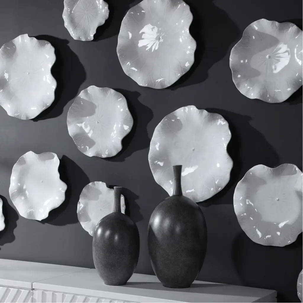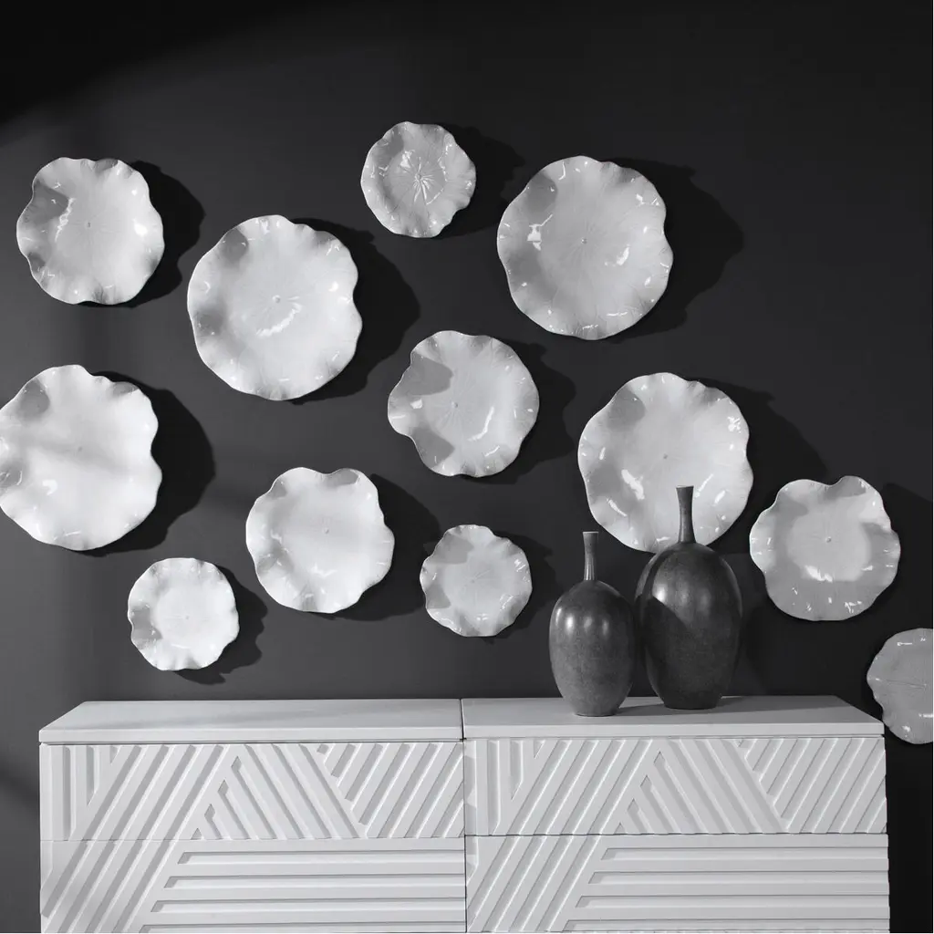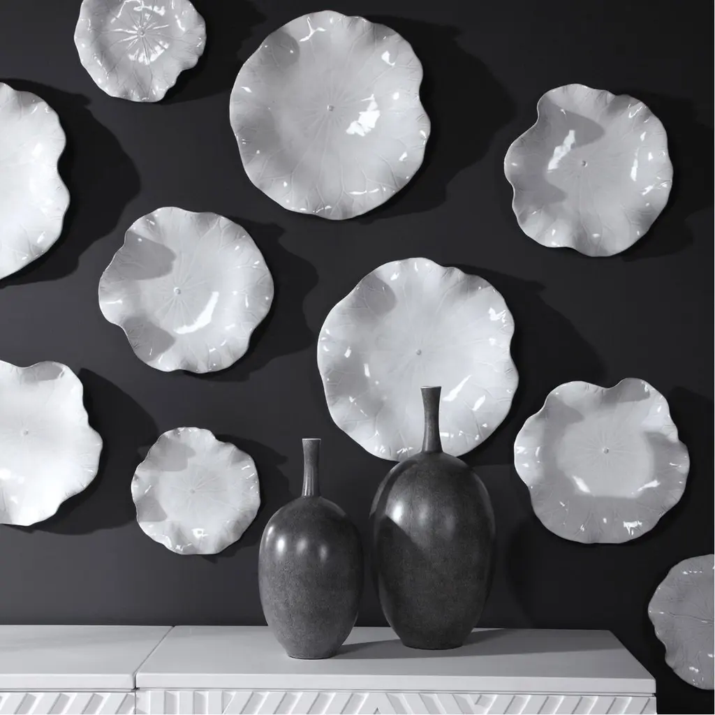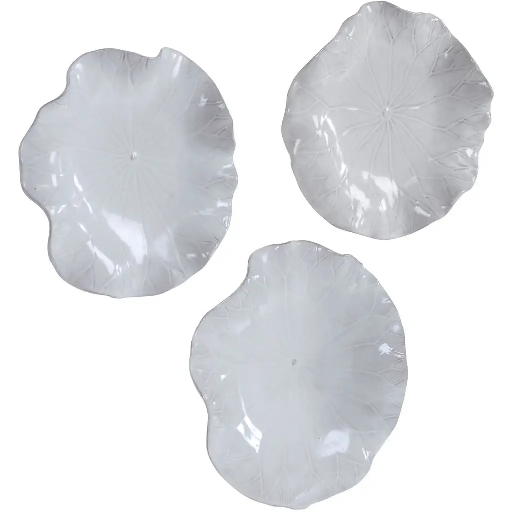 A Trio Of Ceramic Flowers With Detailed Veining, Glazed In A Fresh White Tone. May Be Hung On Wall Or Used As Tabletop Accessory. Sizes: Sm-11x3x11, Med-15x3x15, Lg-18x4x18