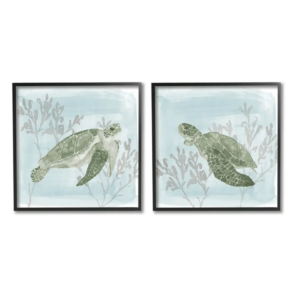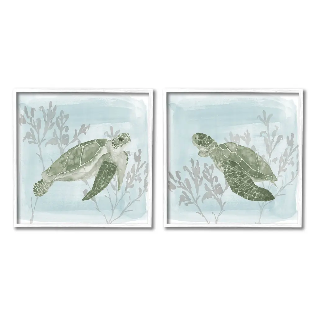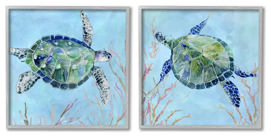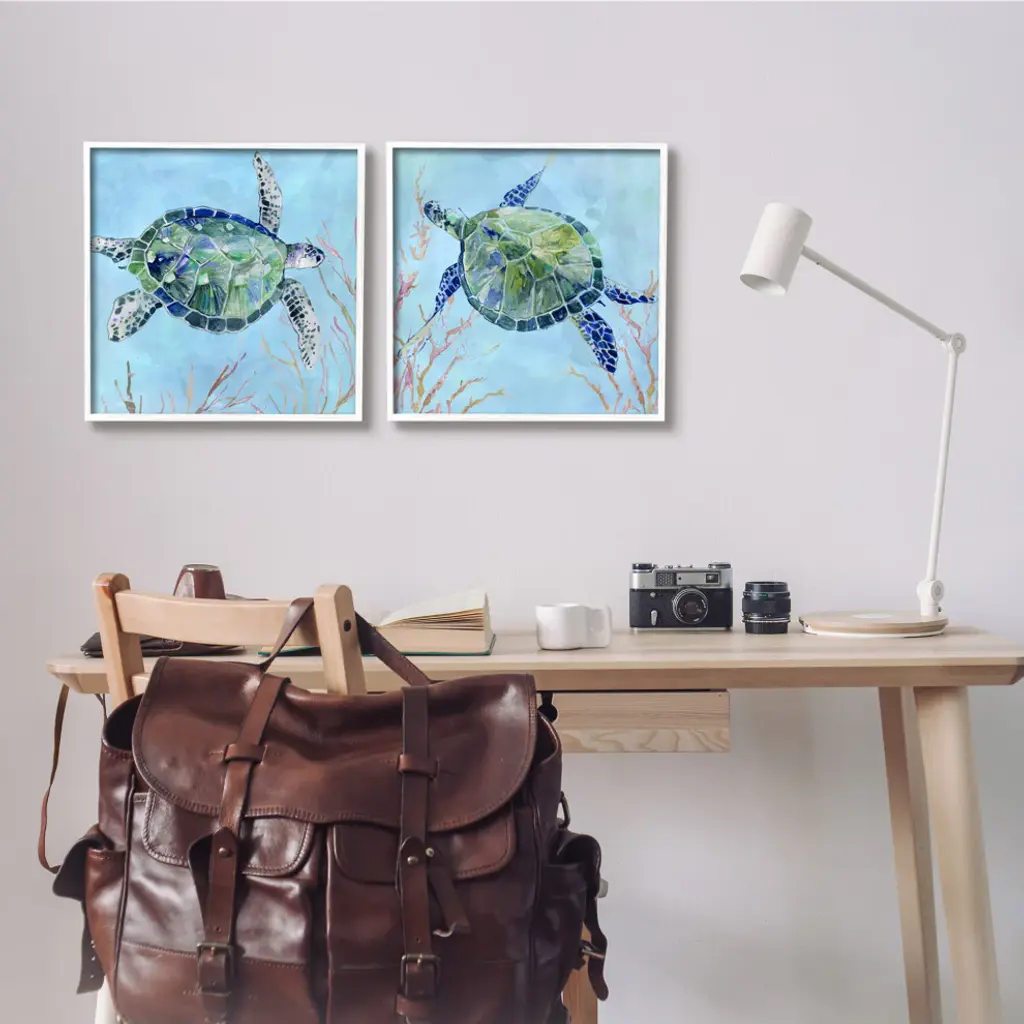 Abstract Blue Green Sea Turtles Deep Sea Coral,17 X 17