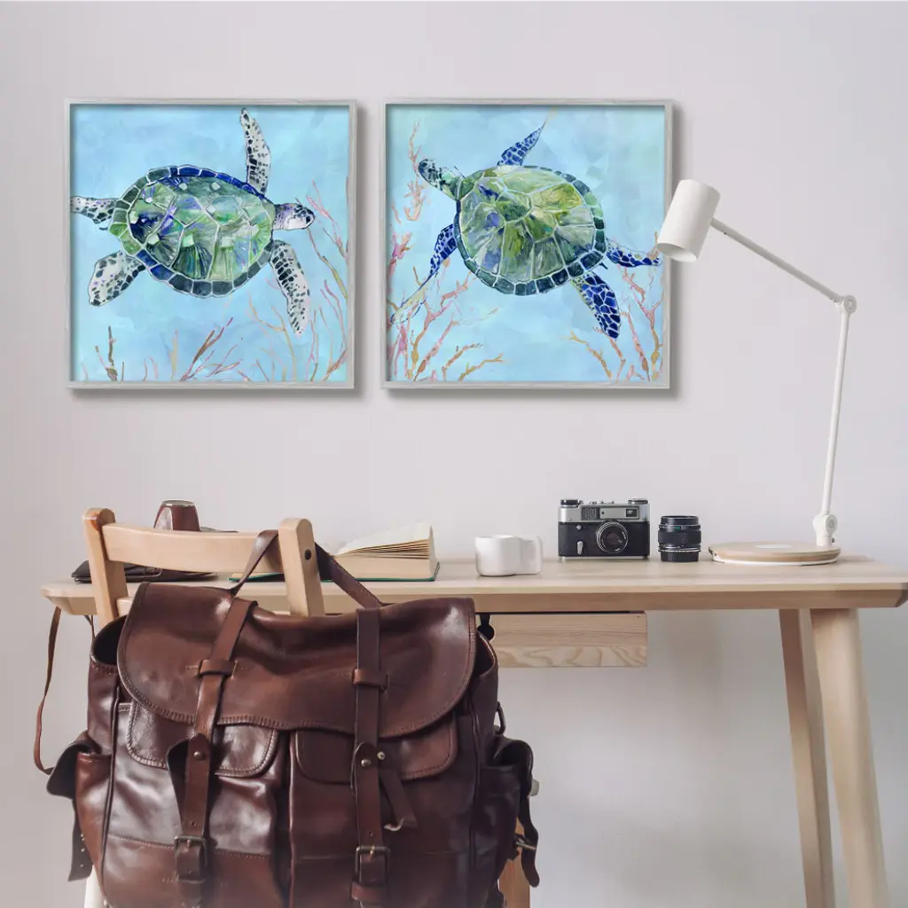 Abstract Blue Green Sea Turtles Deep Sea Coral,24 X 24