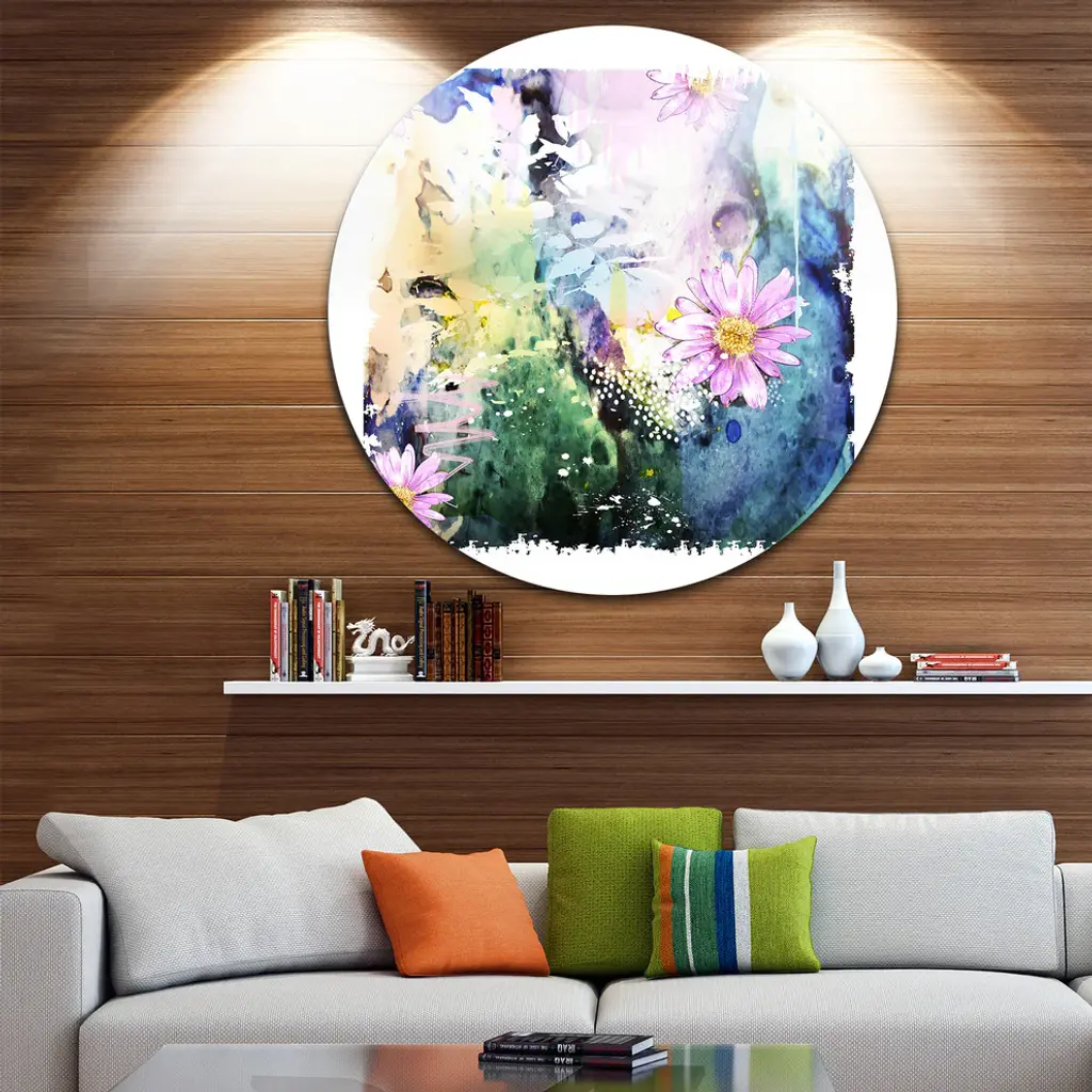 Bring Contemporary Abstraction to your home with this large Circle Metal wall art. This Abstract Blue Pink Floral Art Metal Artwork makes it the focal point of any room or office. - White Gloss Coating ensures colors are extra vibrant with light reflection.- Aluminum grade Sheet Metal with 1 inch mounting frame on the back giving the illusion that the artwork is floating on the wall..- Mounting Brackets are included along with instructions.- High Quality Digital images are created directly into a glossy aluminum panel producing a stunning and captivating print into the glossy finish of the metal.- Water, Fire and Scratch resistant HD Aluminum panels.- Looks better than any photo paper and guaranteed to last at least 20 years- Easy to clean with a microfiber cloth. Colors are far superior to regular Canvas Art. - Easy to Hang