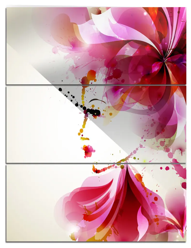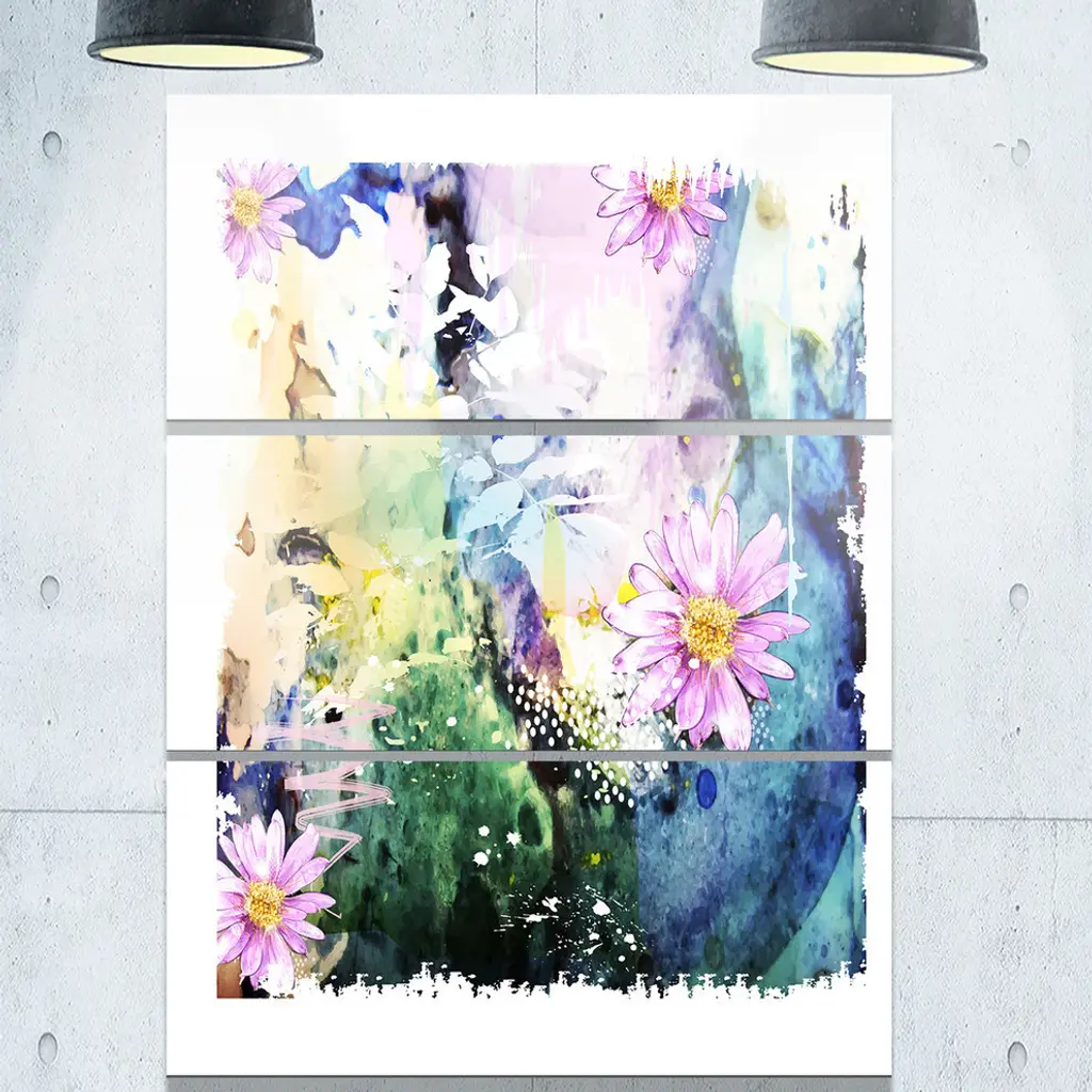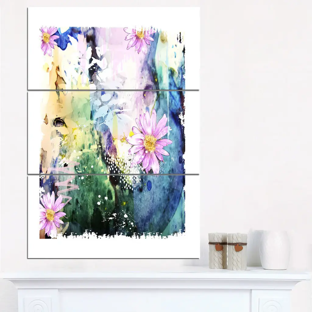 "Abstract Blue Pink Floral Art" Glossy Metal Wall Art, 3 Panels, 28"x36"