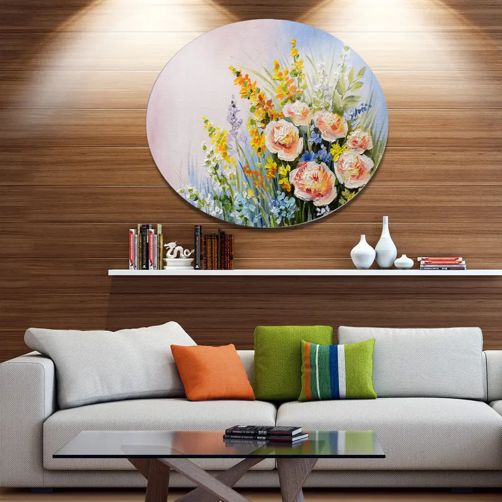 Abstract Bouquet Of Summer Flowers, Flower Disc Metal Wall Art, 11"