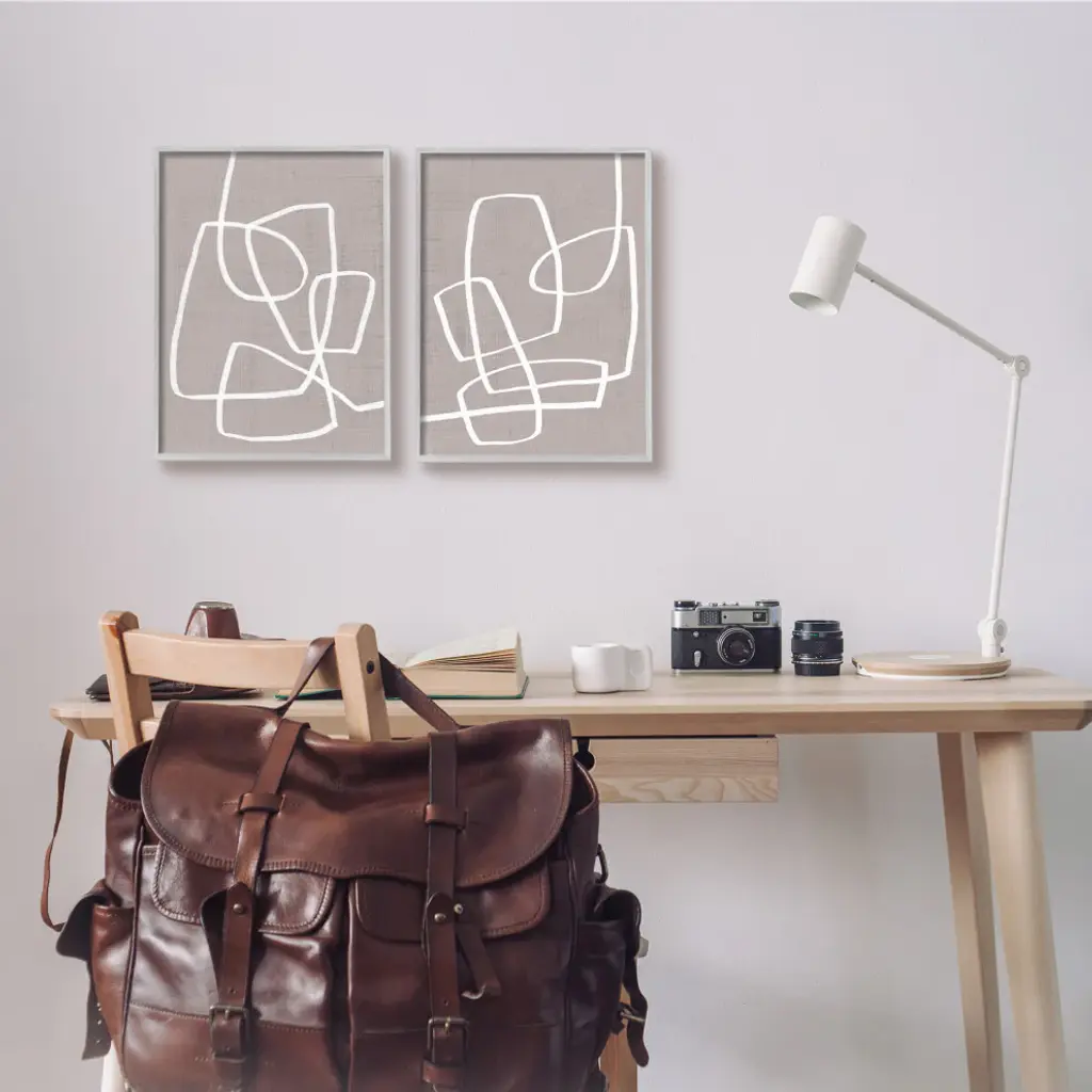 Abstract Busy Line Minimal Boho Design Brown White,2pc, Each 11 X 14