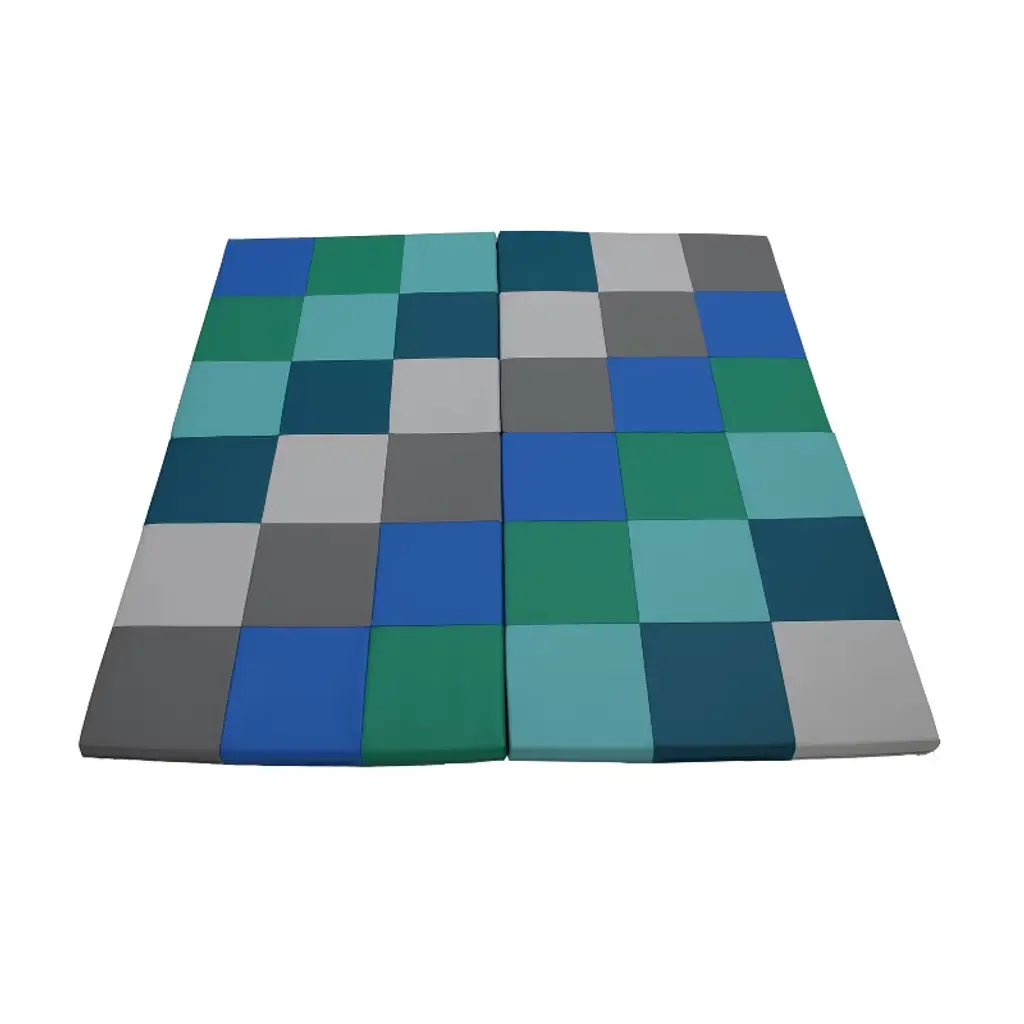 Abstract Checkerboard Plaid Pattern Navy Blue Wood Wall Art