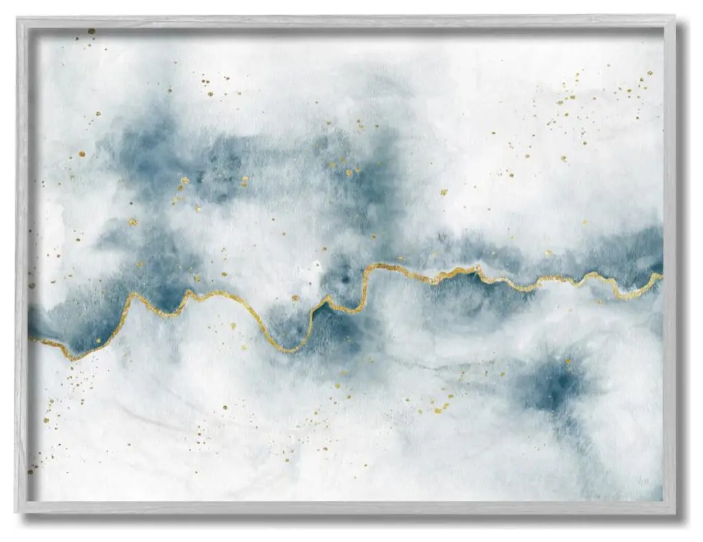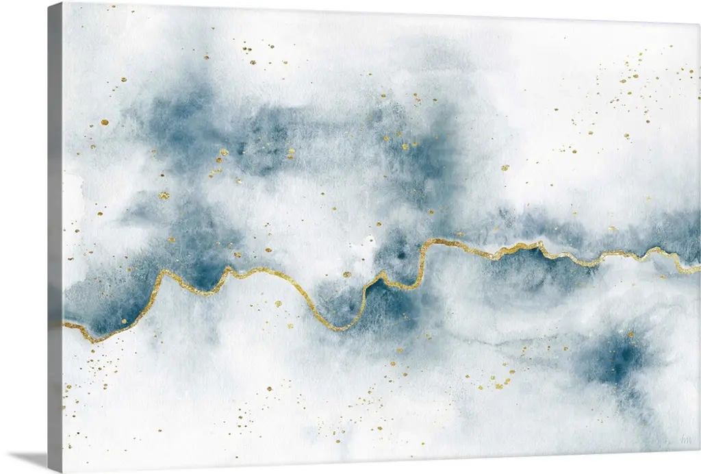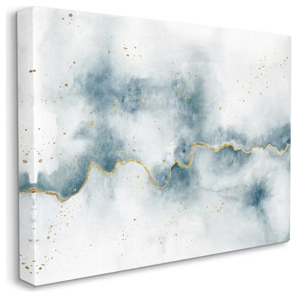 Abstract Cloud Splatters White Blue Gold Painting,1pc, Each 24 X 30