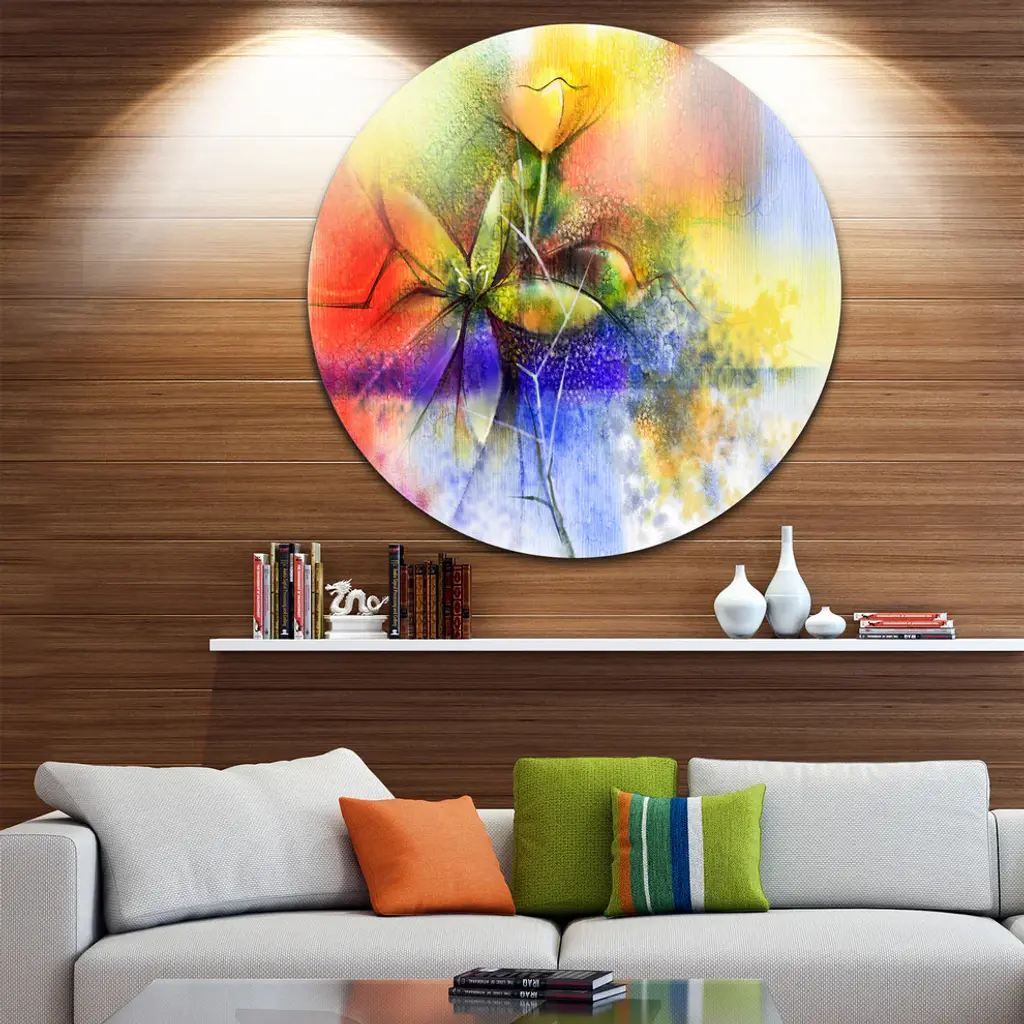 Bring Contemporary Abstraction to your home with this large Circle Metal wall art. This Abstract Colorful Flower Fusion Metal Artwork makes it the focal point of any room or office. - White Gloss Coating ensures colors are extra vibrant with light reflection.- Aluminum grade Sheet Metal with 1 inch mounting frame on the back giving the illusion that the artwork is floating on the wall..- Mounting Brackets are included along with instructions.- High Quality Digital images are created directly into a glossy aluminum panel producing a stunning and captivating print into the glossy finish of the metal.- Water, Fire and Scratch resistant HD Aluminum panels.- Looks better than any photo paper and guaranteed to last at least 20 years- Easy to clean with a microfiber cloth. Colors are far superior to regular Canvas Art. - Easy to Hang