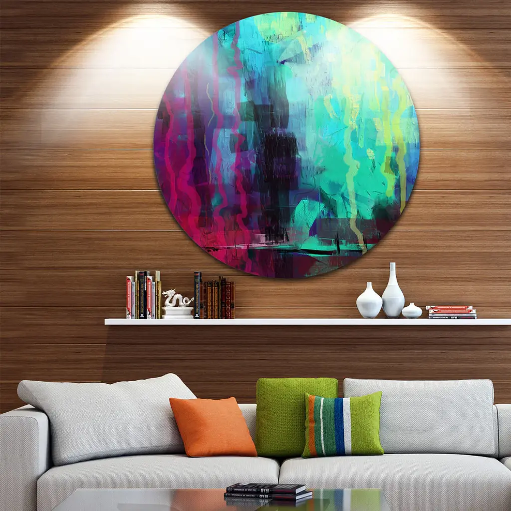Bring Contemporary Abstraction to your home with this large Circle Metal wall art. This Abstract Digital Painting Metal Artwork makes it the focal point of any room or office. - White Gloss Coating ensures colors are extra vibrant with light reflection.- Aluminum grade Sheet Metal with 1 inch mounting frame on the back giving the illusion that the artwork is floating on the wall..- Mounting Brackets are included along with instructions.- High Quality Digital images are created directly into a glossy aluminum panel producing a stunning and captivating print into the glossy finish of the metal.- Water, Fire and Scratch resistant HD Aluminum panels.- Looks better than any photo paper and guaranteed to last at least 20 years- Easy to clean with a microfiber cloth. Colors are far superior to regular Canvas Art. - Easy to Hang
