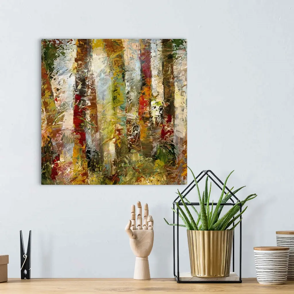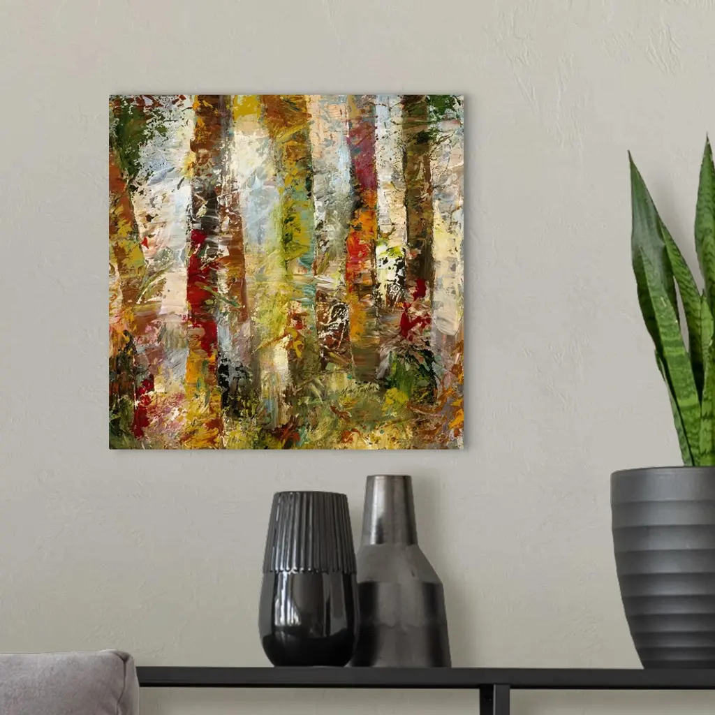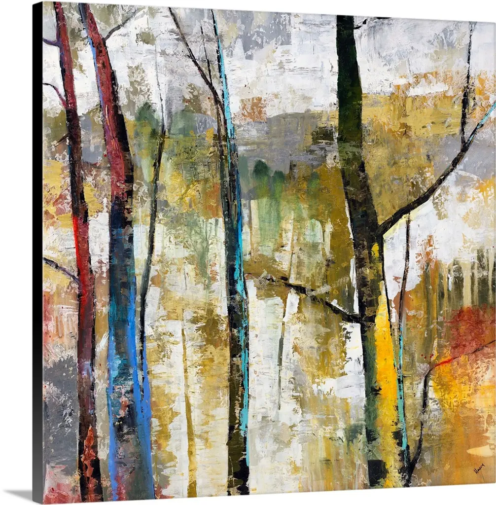 Contemporary abstract painting of a mash-up of colors and textures resembling a dense forest.