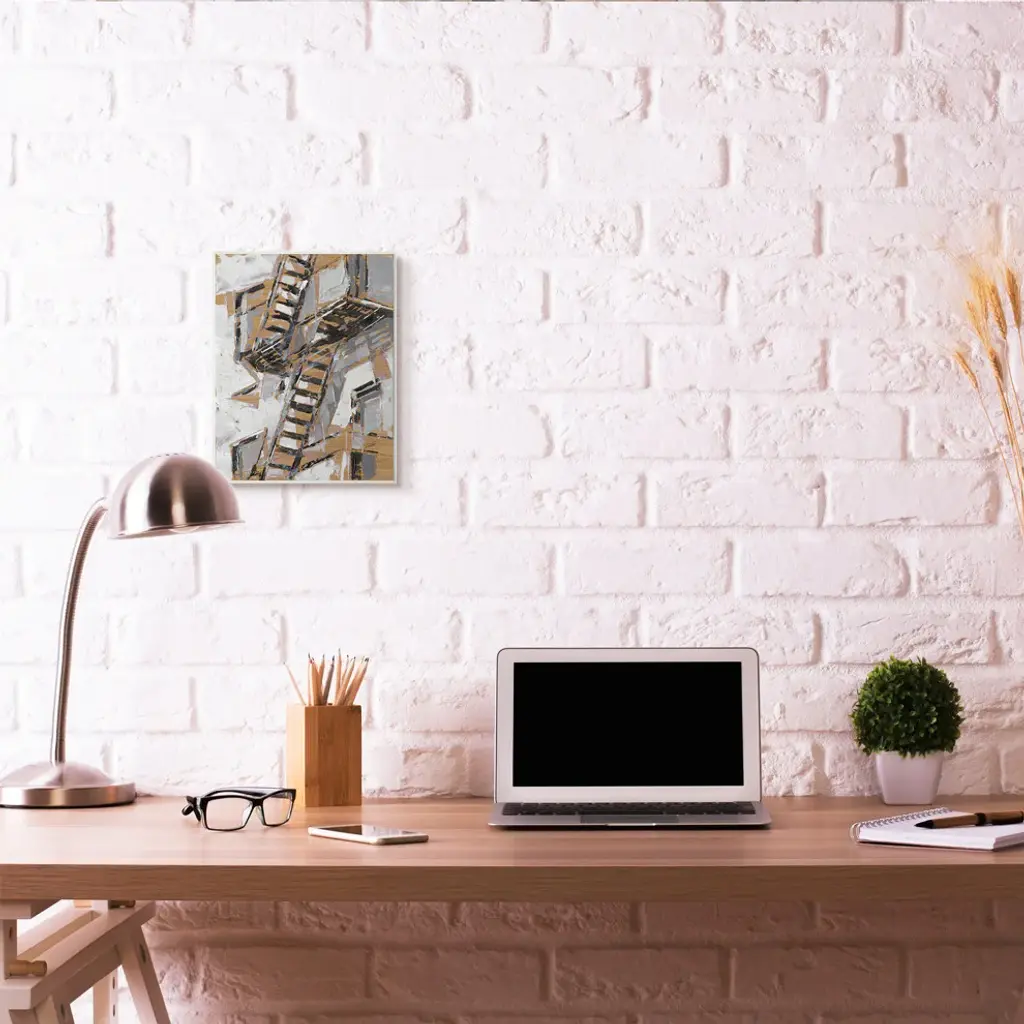 Abstract Fire Escape Silver Gold City Painting, 10"x15"
