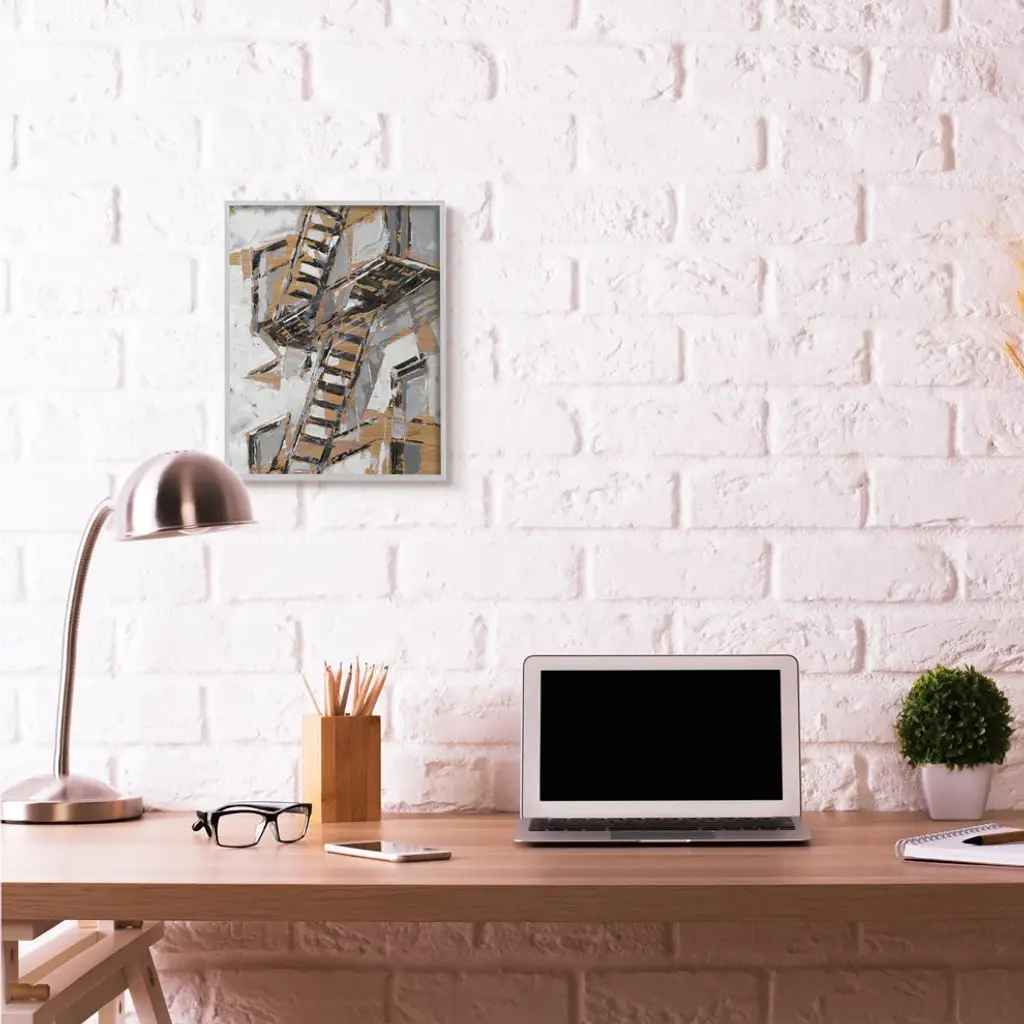 Abstract Fire Escape Silver Gold City Painting, 16"x20"