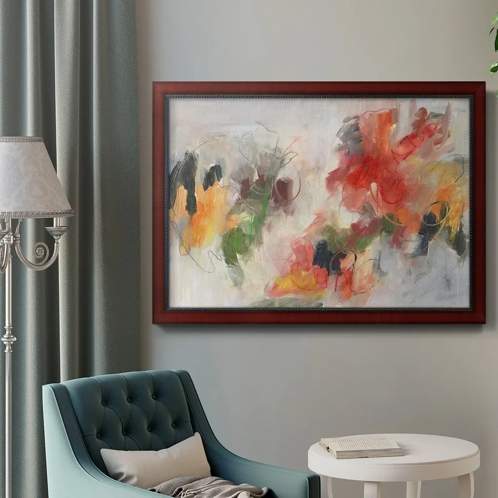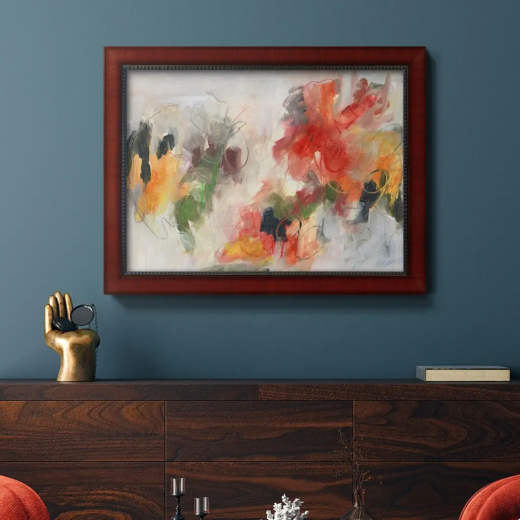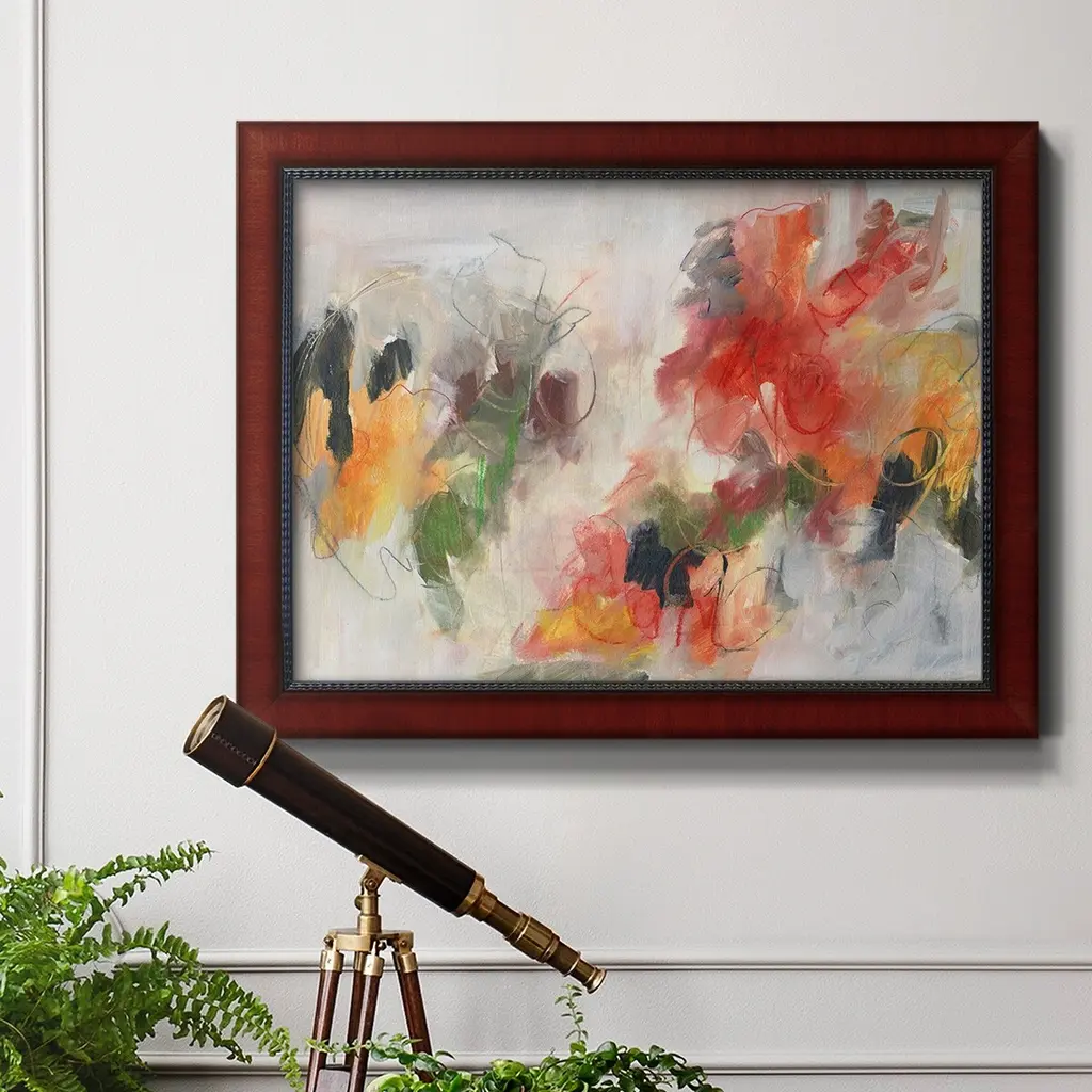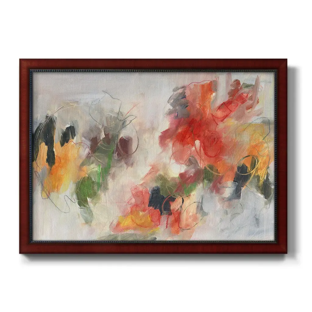 Abstract Floral Delight II Premium Framed Canvas- Ready to Hang A Premium Framed Canvas created to last. Framed in distressed wood and available in an array of sizes and colors Featuring a beveled a solid wood stretcher bar, each piece comes ready to hand 3 SIZES AVAILABLE 16''X20'' - Overall Size 18'X27'' - Overall Size 24''x36'' - Overall Size Each piece is made to order. Each piece comes with hanging hardware. Made in the USA Ready to Hang Giclee Paper Print Acrylic Glass Beveled Matt Board