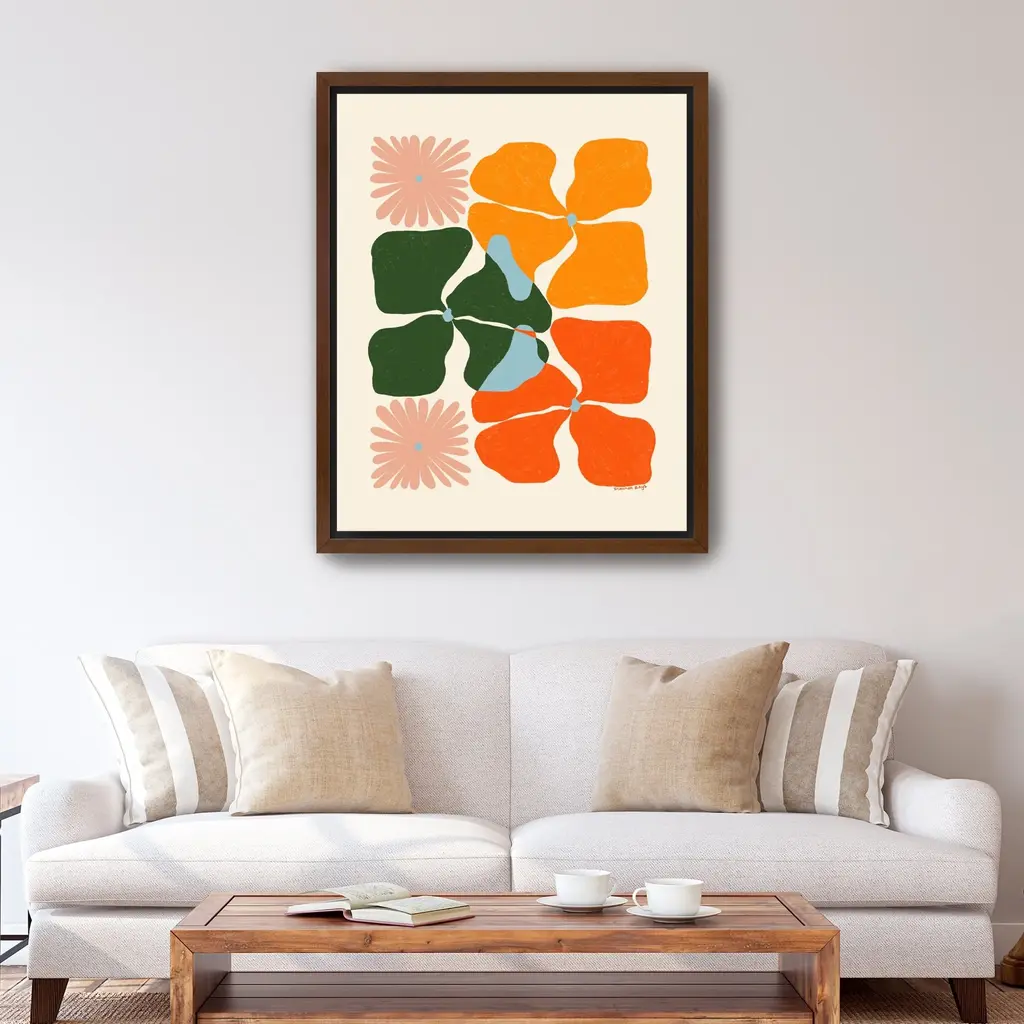 Introduce a breath of fresh air to your decor with this stunning abstract botanical canvas art print. Featuring an imaginative representation of botanical elements, this artwork harmoniously blends colors and shapes to create a captivating focal point.Available in black frame, dark walnut frame and oak frames, or as a frameless canvas. Our Gallery Wrap Canvas Prints are proudly assembled with high quality materials in California, USA. Each piece is printed on a thick, archival grade canvas using Giclee technology. It is then hand-stretched by our experienced artisans over solid pine bars, which will not warp over time. The final product is a piece personally crafted for you to confidently display on your wall. Care and Assembly: Ensure that the location of your piece has little to no exposure to heat, sunlight, and moisture. Wipe clean, only if needed. Each piece includes a sawtooth hanger to hang on your wall vertically.