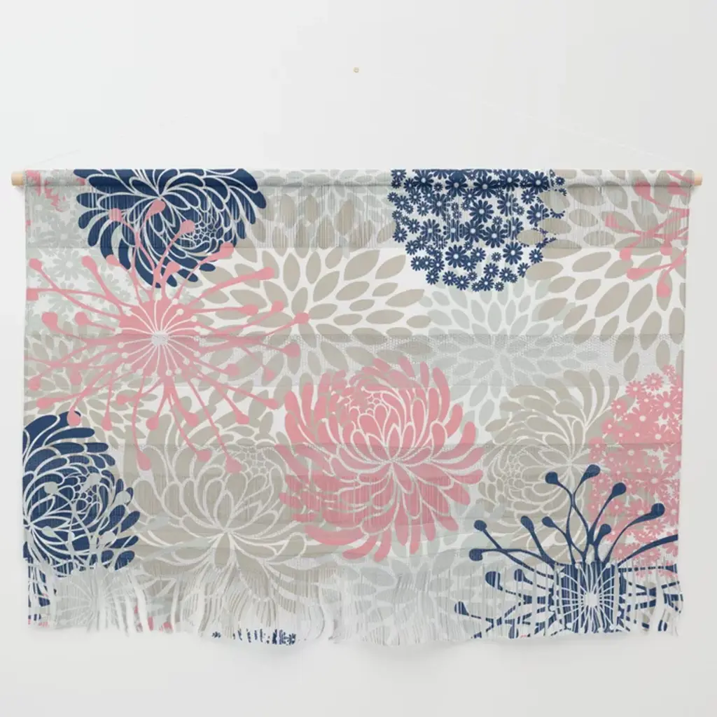 Abstract, Floral Prints, Coral, Green, Yellow Wall Hanging