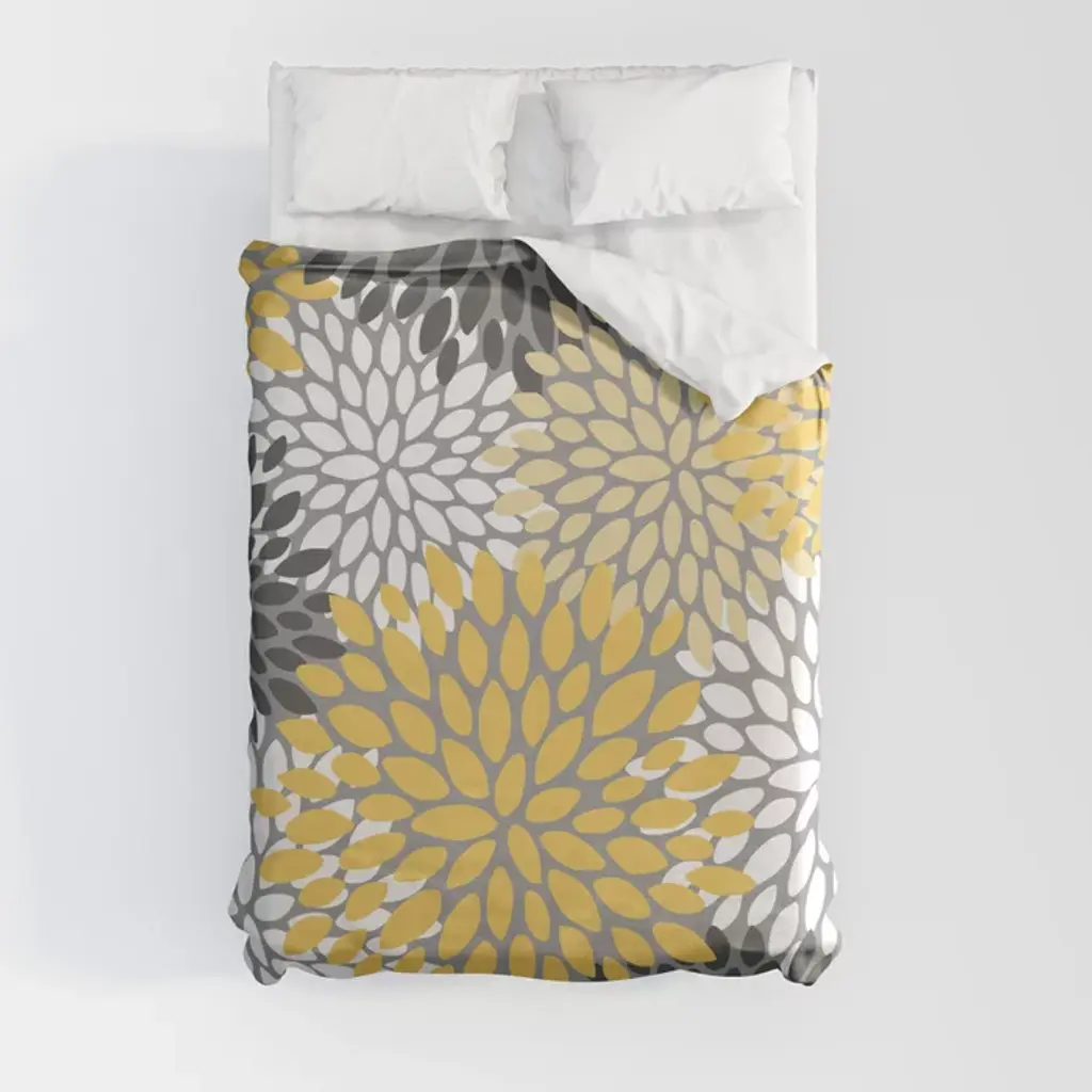 Abstract, Floral Prints, Navy Blue And Grey Comforter