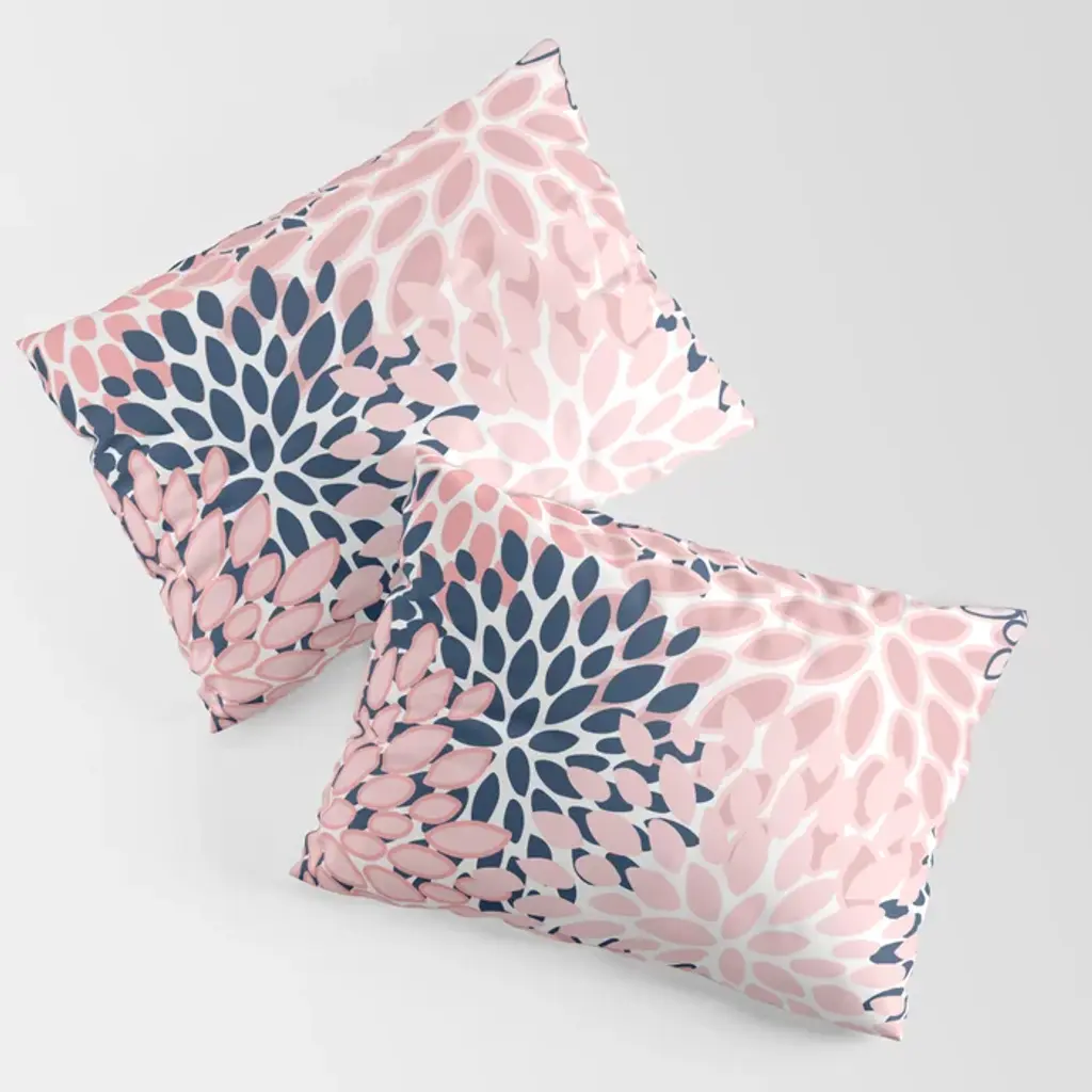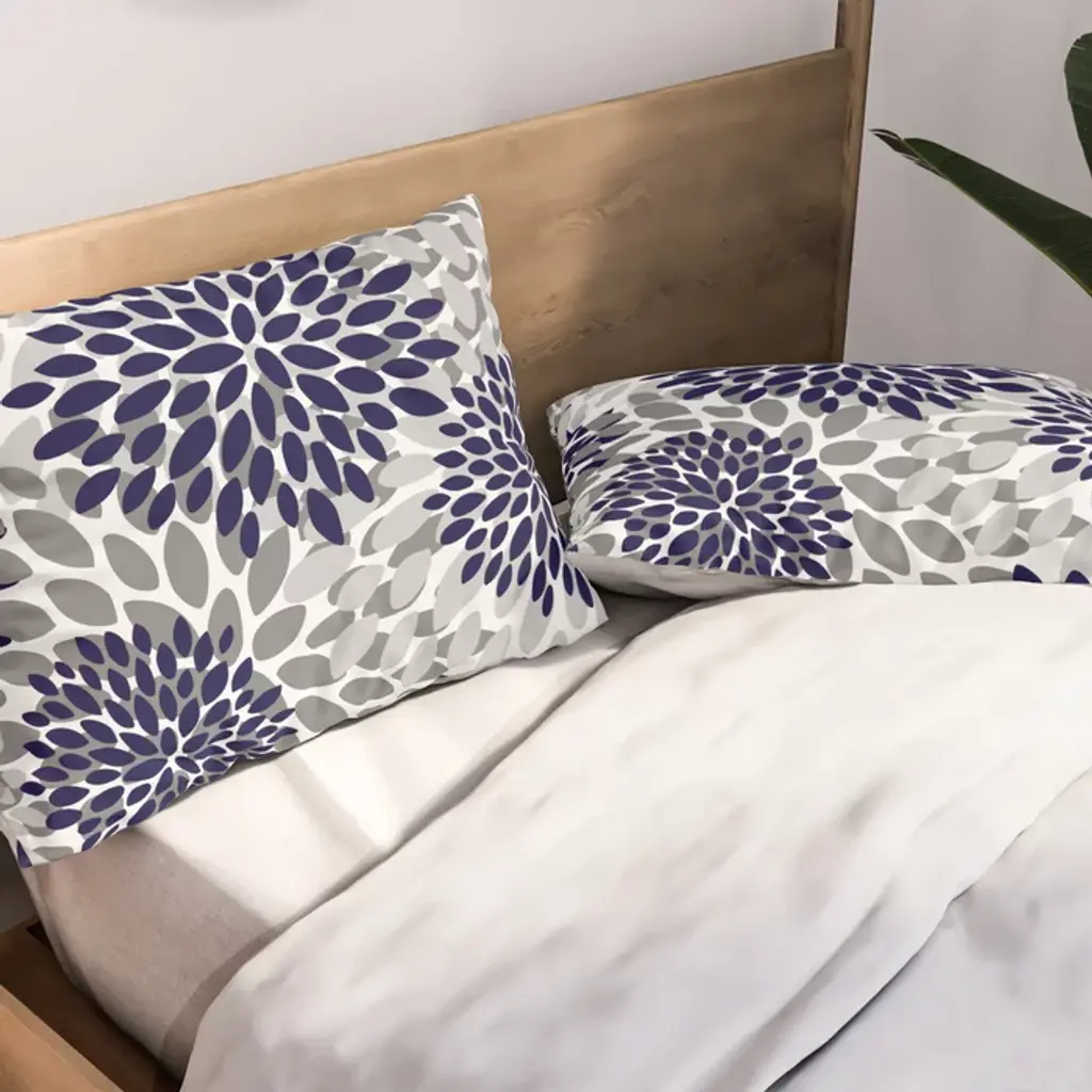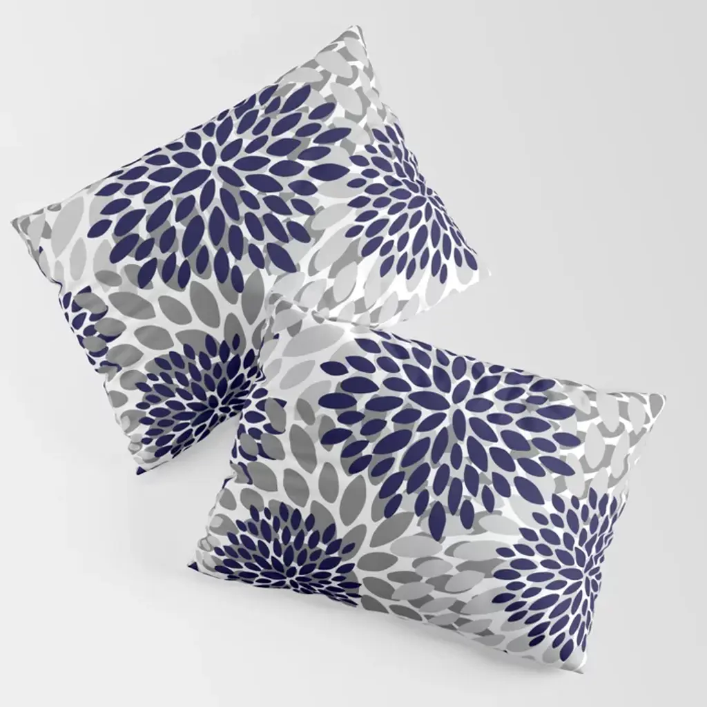 Abstract, Floral Prints, Navy Blue And Grey Pillow Sham