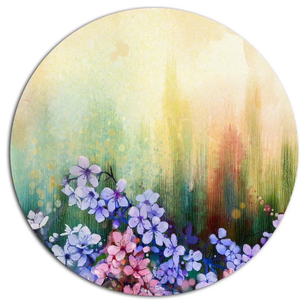 Bring Contemporary Abstraction to your home with this large Circle Metal wall art. This Abstract Flower Watercolor Painting Metal Artwork makes it the focal point of any room or office. - White Gloss Coating ensures colors are extra vibrant with light reflection.- Aluminum grade Sheet Metal with 1 inch mounting frame on the back giving the illusion that the artwork is floating on the wall..- Mounting Brackets are included along with instructions.- High Quality Digital images are created directly into a glossy aluminum panel producing a stunning and captivating print into the glossy finish of the metal.- Water, Fire and Scratch resistant HD Aluminum panels.- Looks better than any photo paper and guaranteed to last at least 20 years- Easy to clean with a microfiber cloth. Colors are far superior to regular Canvas Art. - Easy to Hang