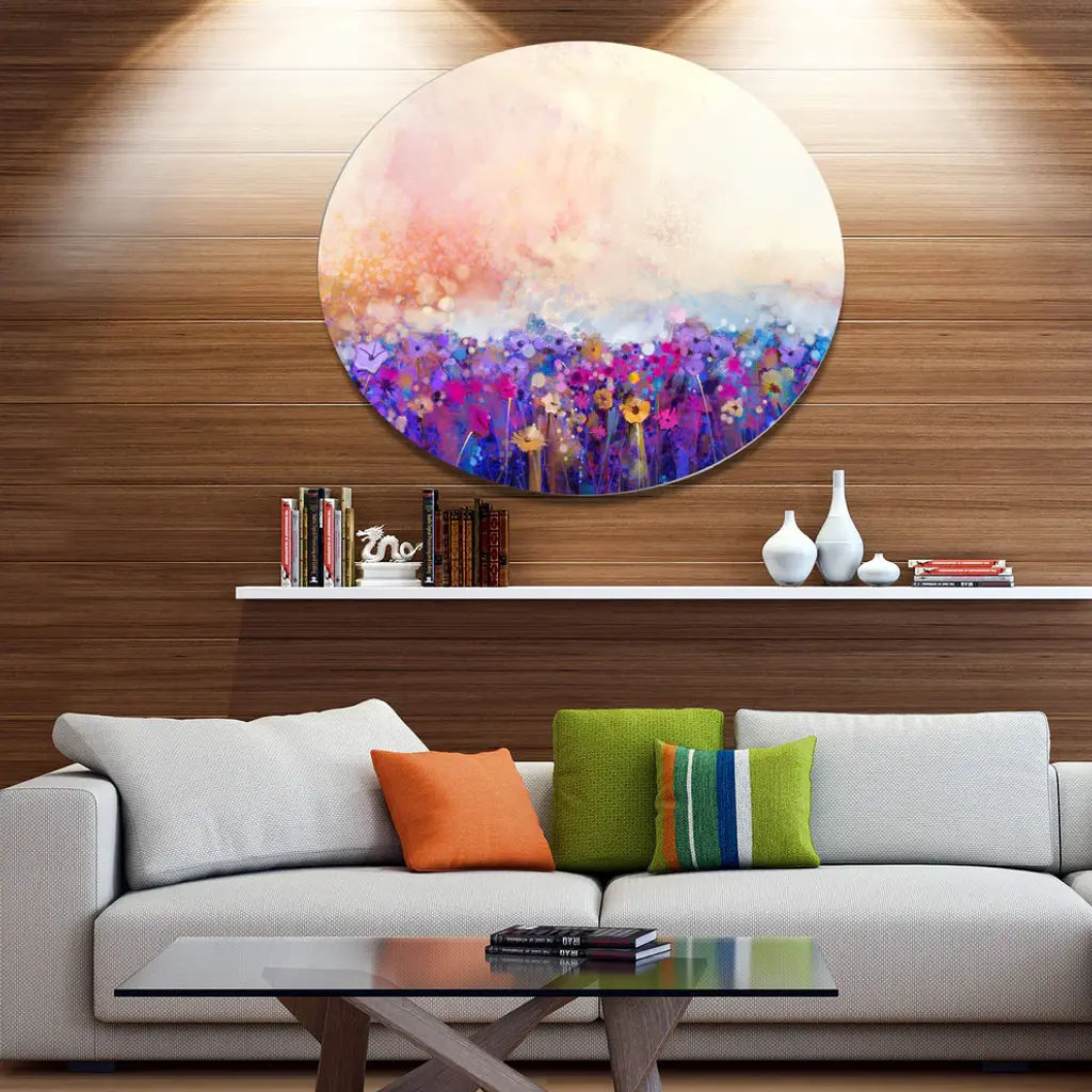 Abstract Flower Watercolor Painting, Floral Disc Metal Wall Art, 38"