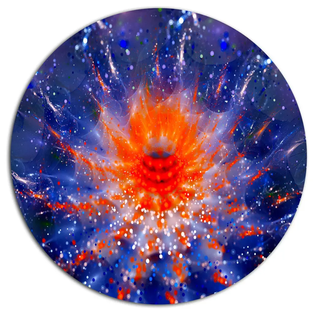 Abstract Fractal Gears And Lights, Flowers Disc Metal Wall Art, 11"