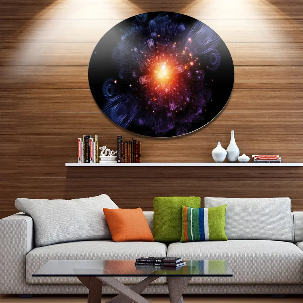 Bring Contemporary Abstraction to your home with this large Circle Metal wall art. This Abstract Fractal Gears and Lights Metal Artwork makes it the focal point of any room or office. - White Gloss Coating ensures colors are extra vibrant with light reflection.- Aluminum grade Sheet Metal with 1 inch mounting frame on the back giving the illusion that the artwork is floating on the wall..- Mounting Brackets are included along with instructions.- High Quality Digital images are created directly into a glossy aluminum panel producing a stunning and captivating print into the glossy finish of the metal.- Water, Fire and Scratch resistant HD Aluminum panels.- Looks better than any photo paper and guaranteed to last at least 20 years- Easy to clean with a microfiber cloth. Colors are far superior to regular Canvas Art. - Easy to Hang