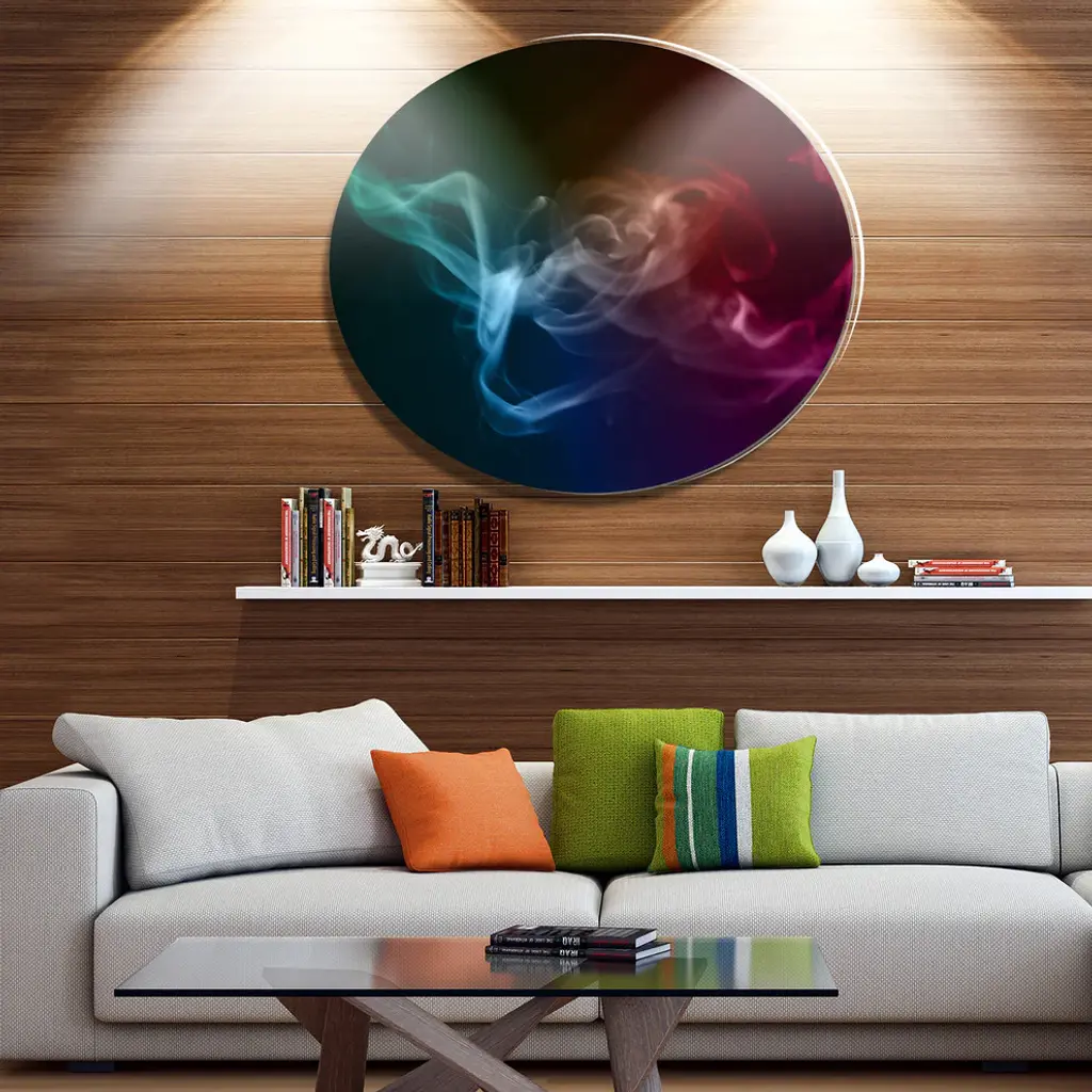 Bring Contemporary Abstraction to your home with this large Circle Metal wall art. This Abstract Fractal Smoke Waves Metal Artwork makes it the focal point of any room or office. - White Gloss Coating ensures colors are extra vibrant with light reflection.- Aluminum grade Sheet Metal with 1 inch mounting frame on the back giving the illusion that the artwork is floating on the wall..- Mounting Brackets are included along with instructions.- High Quality Digital images are created directly into a glossy aluminum panel producing a stunning and captivating print into the glossy finish of the metal.- Water, Fire and Scratch resistant HD Aluminum panels.- Looks better than any photo paper and guaranteed to last at least 20 years- Easy to clean with a microfiber cloth. Colors are far superior to regular Canvas Art. - Easy to Hang