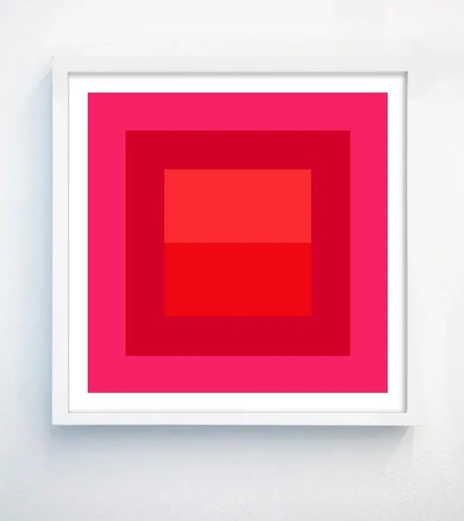Continuing our series of Color Studies, using abstract geometric compositions that explore relative color relations. This 4 set explores a range of red, magenta, pink, and purple. Unframed archival prints on 100% cotton fine art paper with a matte finish.