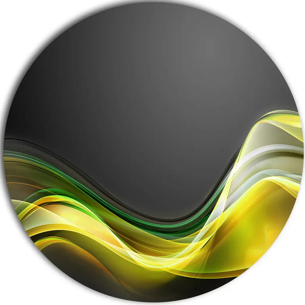 Bring Contemporary Abstraction to your home with this large Circle Metal wall art. This Abstract Golden Waves Metal Artwork makes it the focal point of any room or office. - White Gloss Coating ensures colors are extra vibrant with light reflection.- Aluminum grade Sheet Metal with 1 inch mounting frame on the back giving the illusion that the artwork is floating on the wall..- Mounting Brackets are included along with instructions.- High Quality Digital images are created directly into a glossy aluminum panel producing a stunning and captivating print into the glossy finish of the metal.- Water, Fire and Scratch resistant HD Aluminum panels.- Looks better than any photo paper and guaranteed to last at least 20 years- Easy to clean with a microfiber cloth. Colors are far superior to regular Canvas Art. - Easy to Hang