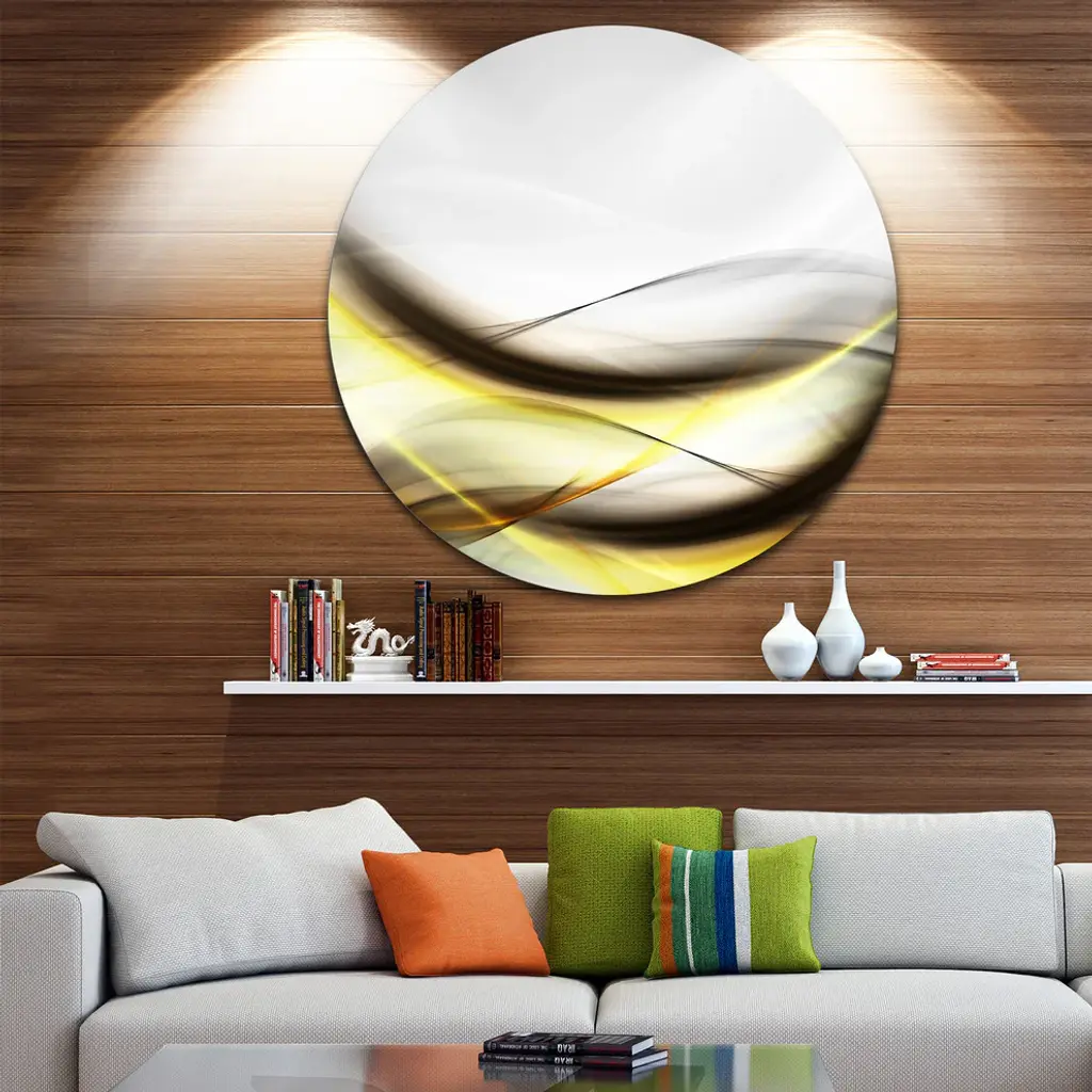 Abstract Golden Waves, Abstract Digital Art Disc Metal Artwork, 23"