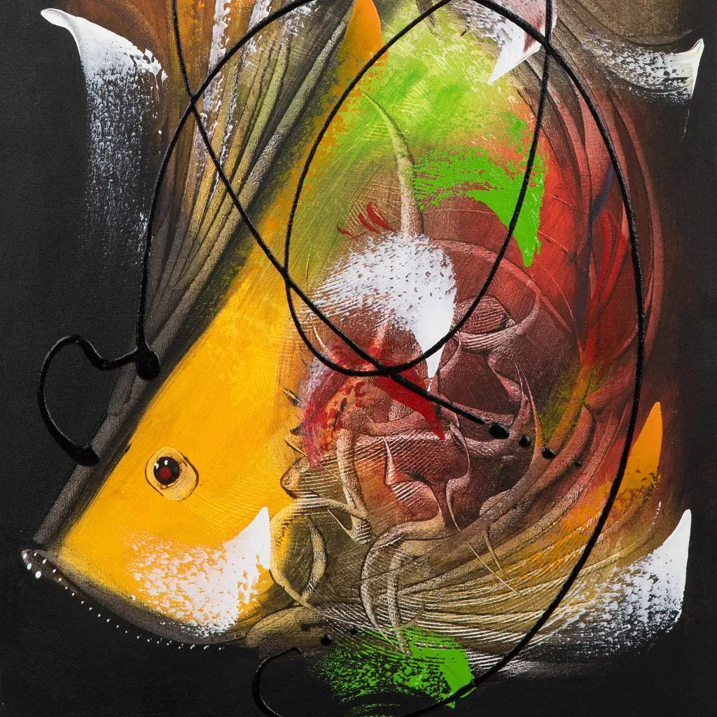 Swimming against convention never looked so beautiful as in this vibrant acrylic interpretation of one of nature's most optimistic creatures. Indonesia's Koko Bali channels the goldfish's legendary determination through explosive color combinations and fluid abstract forms that seem to move with life itself. This striking contemporary piece celebrates both artistic innovation and cultural tradition, transforming the classic symbol of luck and prosperity into a bold statement that draws the eye in any setting.