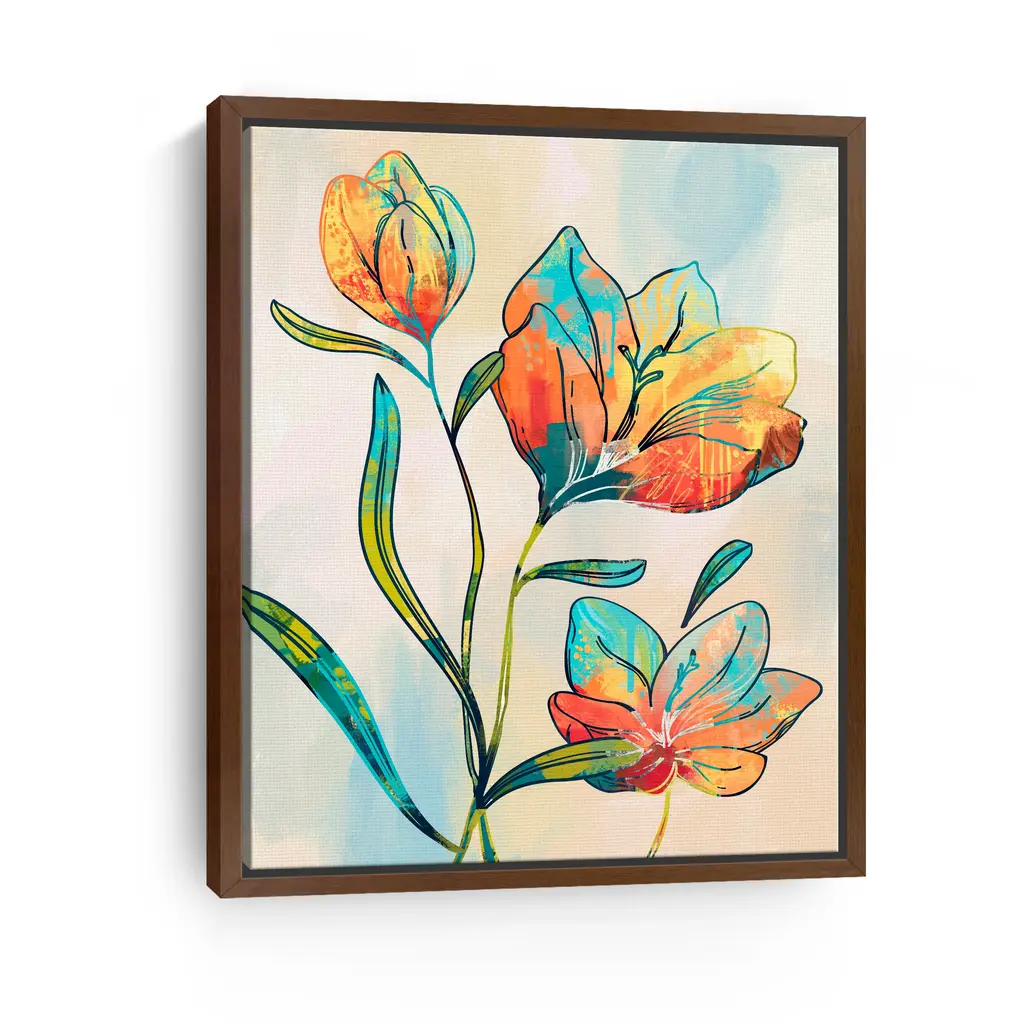 Abstract Graffiti Flowers Canvas Giclee Wall Art - Framed / Black / 30x40