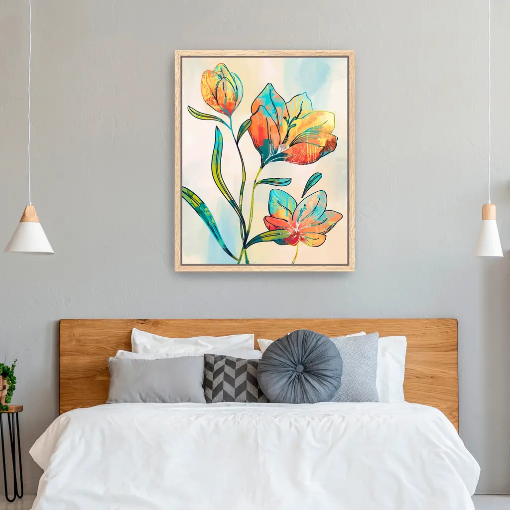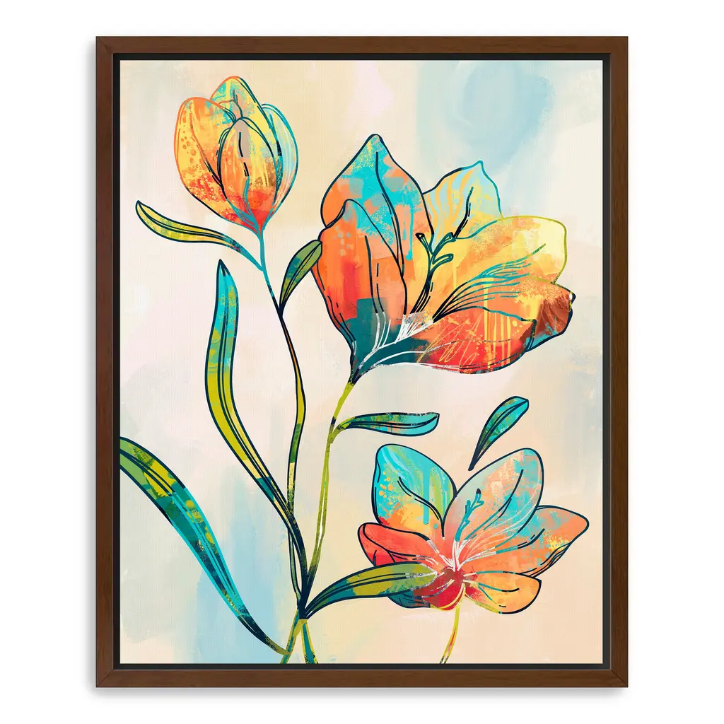 Abstract Graffiti Flowers Canvas Giclee Wall Art - Framed / Oak / 30x40