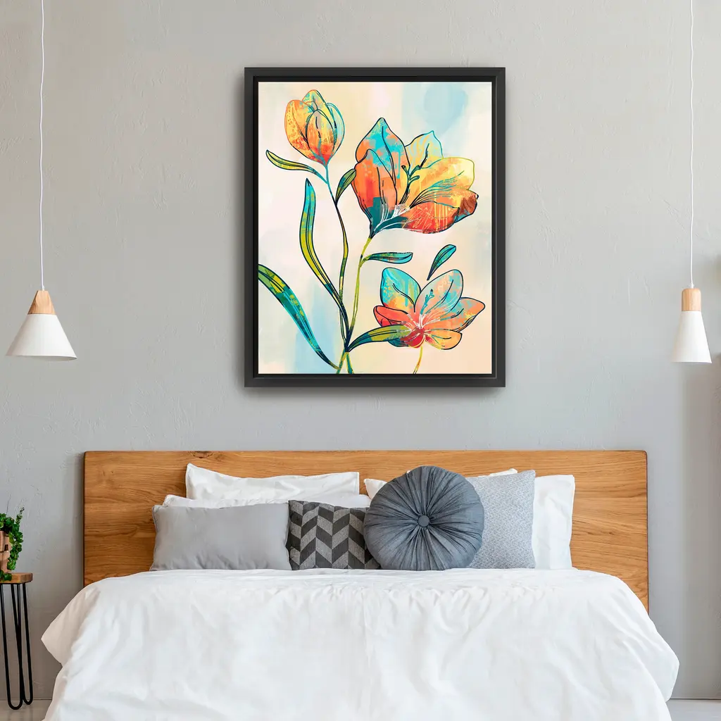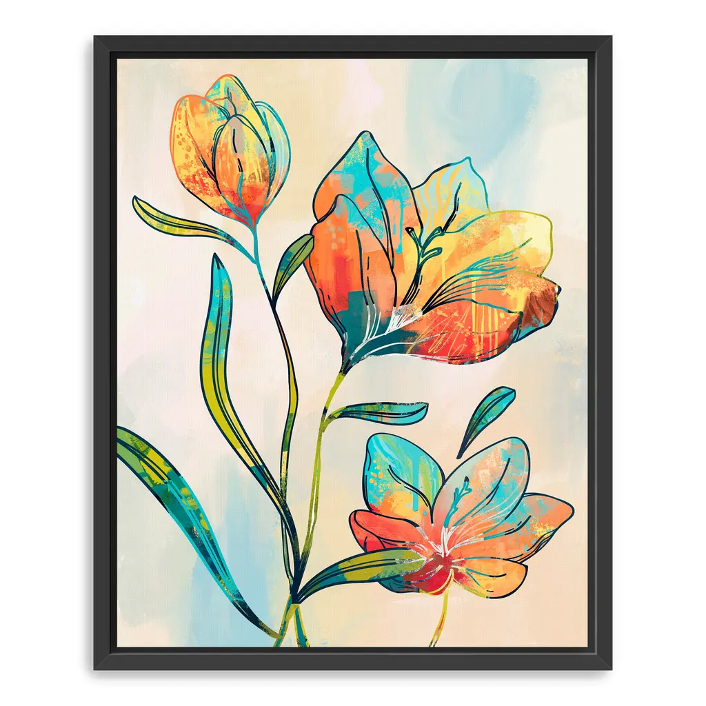 Abstract Graffiti Flowers Canvas Giclee Wall Art - Framed / Walnut / 16x20