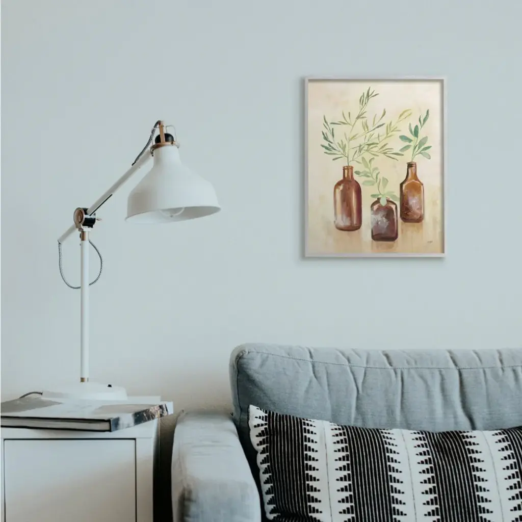 Abstract House Plants In Glass Green Brown Painting,1pc, Each 16 X 20