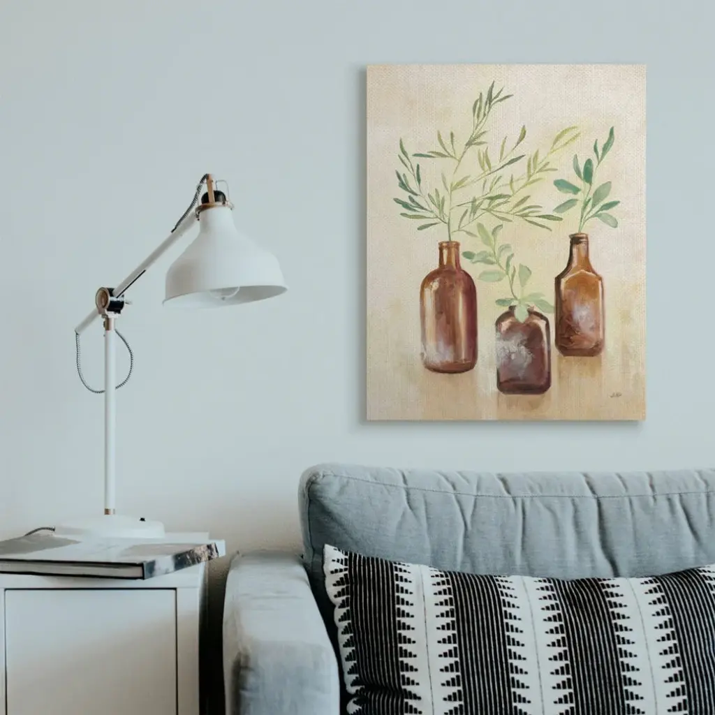 Abstract House Plants In Glass Green Brown Painting,1pc, Each 30 X 40