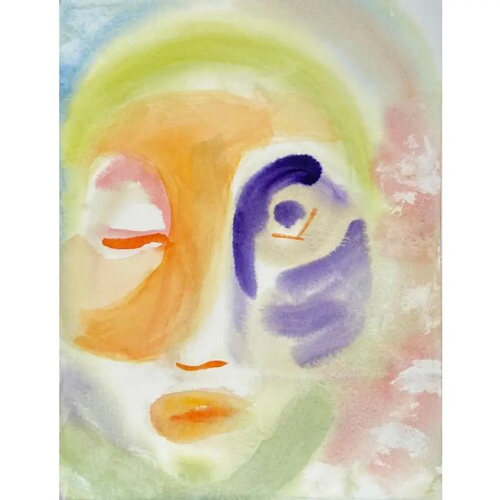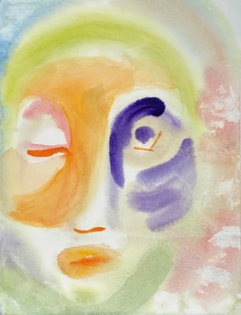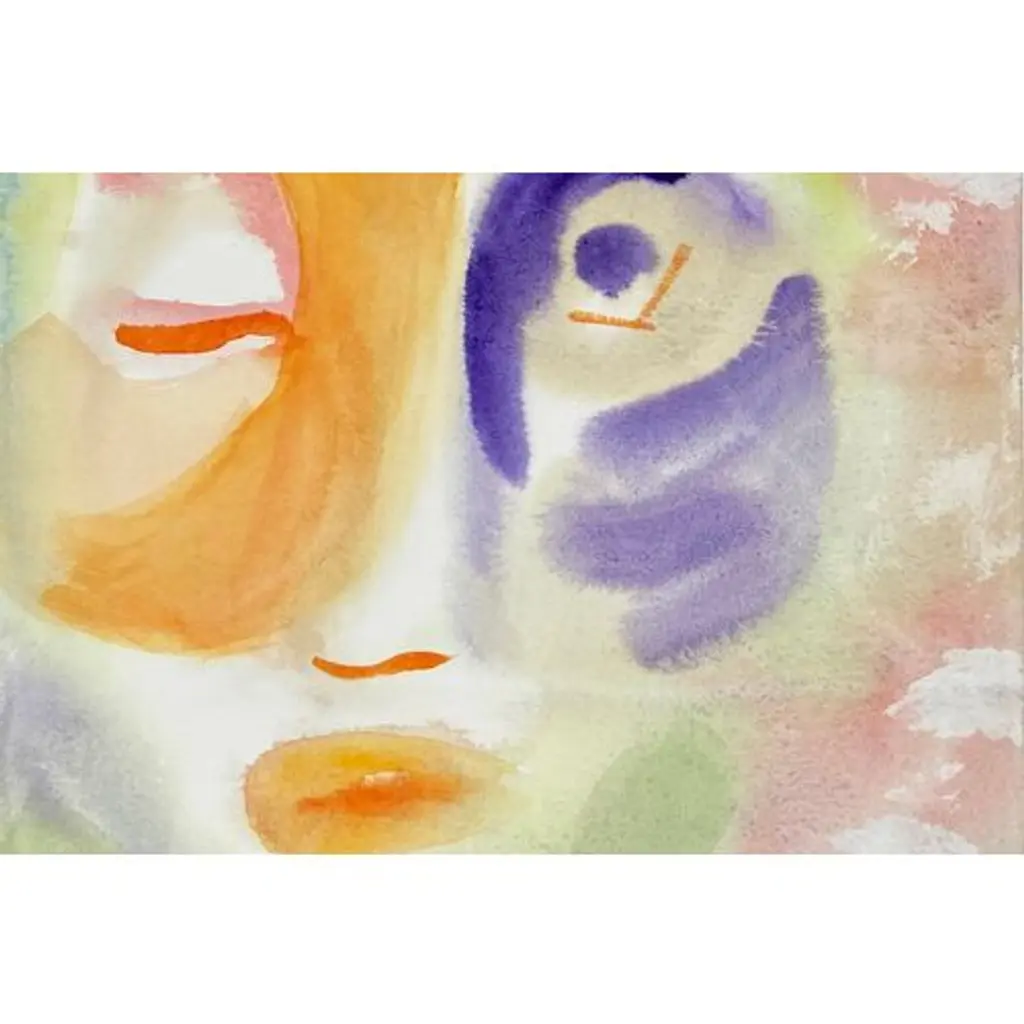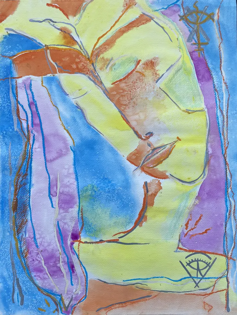 A bright, Post-Impressionist abstracted figural watercolor by Barbara Mahone (American, 20th century); stamped, verso, with certification of authenticity and titled "Abstract IV".