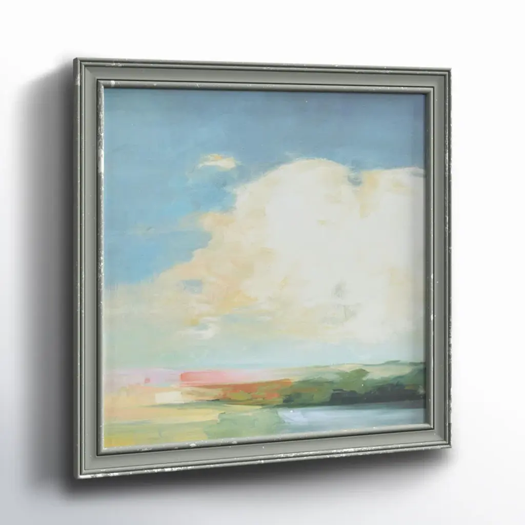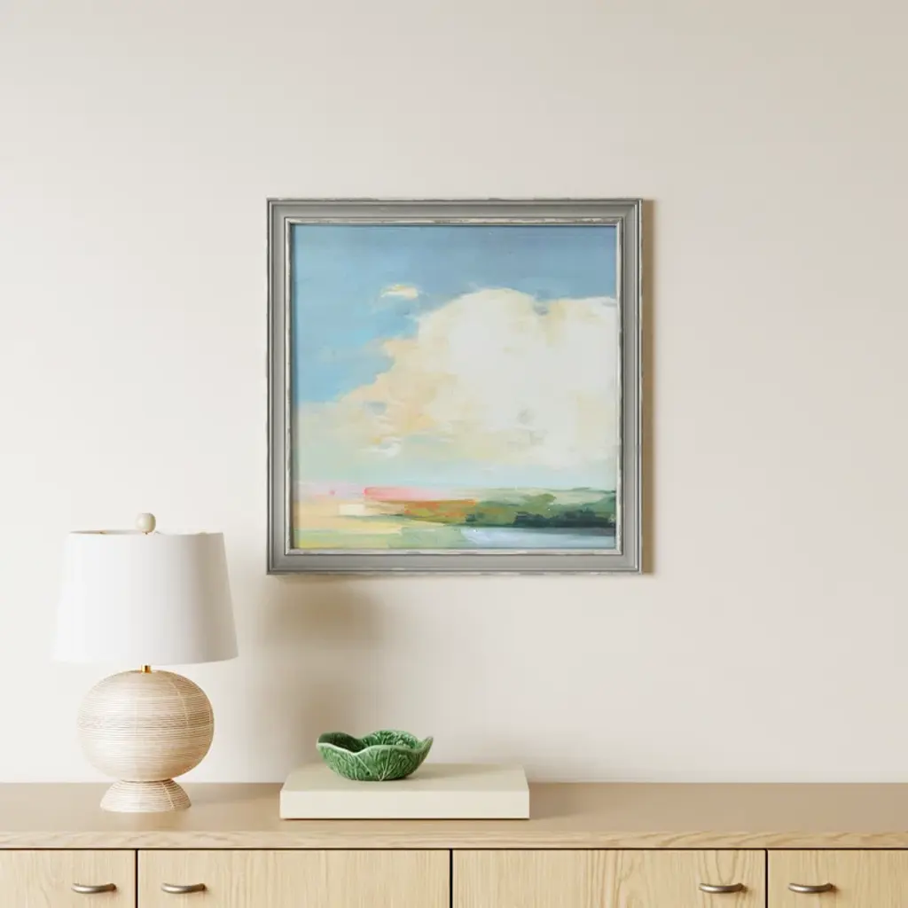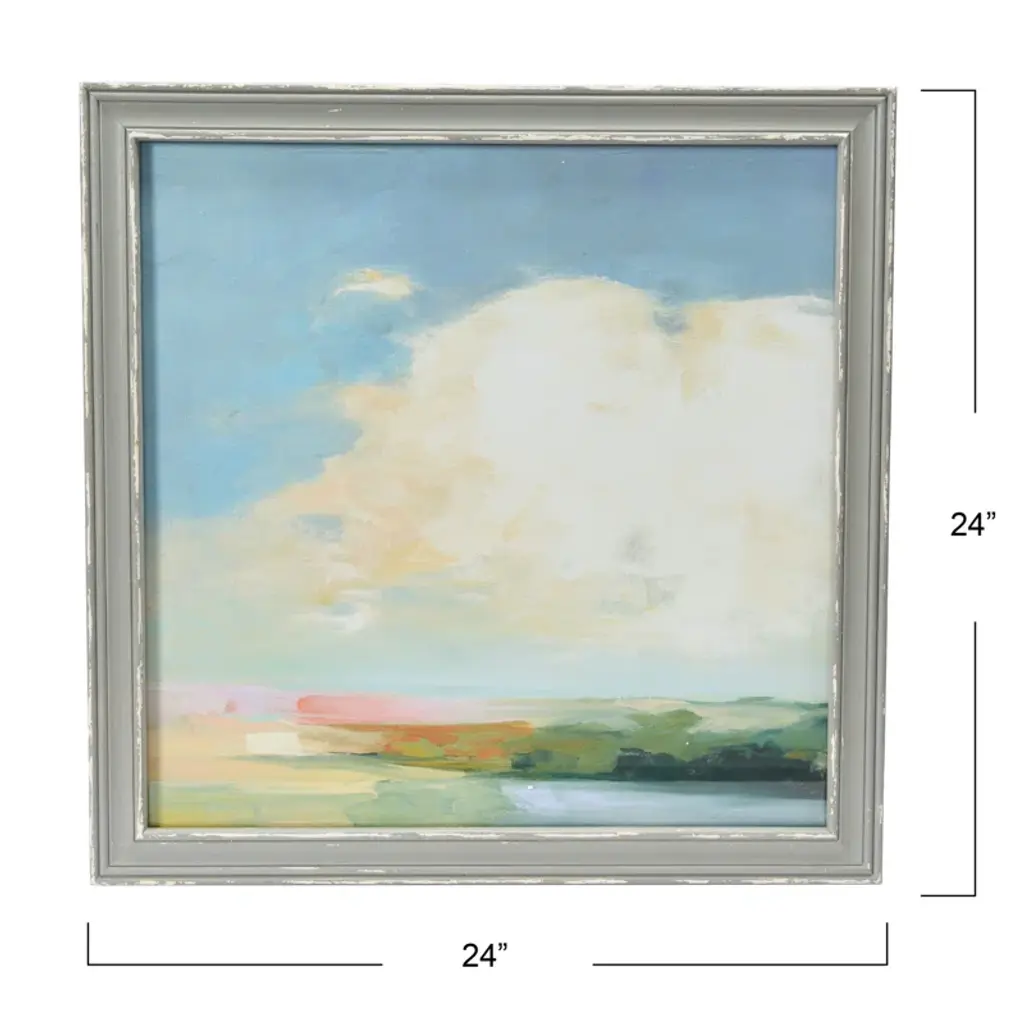 This painting print will liven up any gallery wall in your living room or entryway with its blue, green, and off-white abstract landscape. It's printed on artist-quality paper using high-quality inks and framed under glass, so you can hang it in a sunny spot without worry. Best of all, this piece has tight corners that are designed to not warp or sag over time. Plus, we love that this wall art comes with a distressed wood molding frame and wall-mounting hardware, so you can hang it up as soon as it arrives.