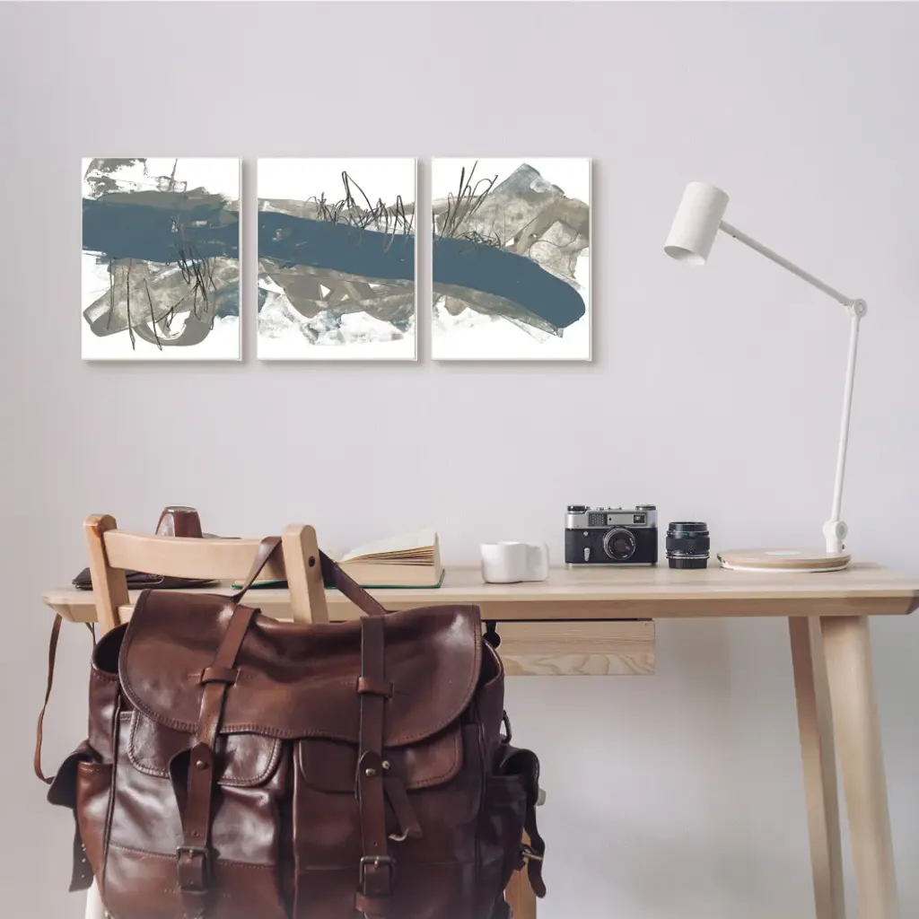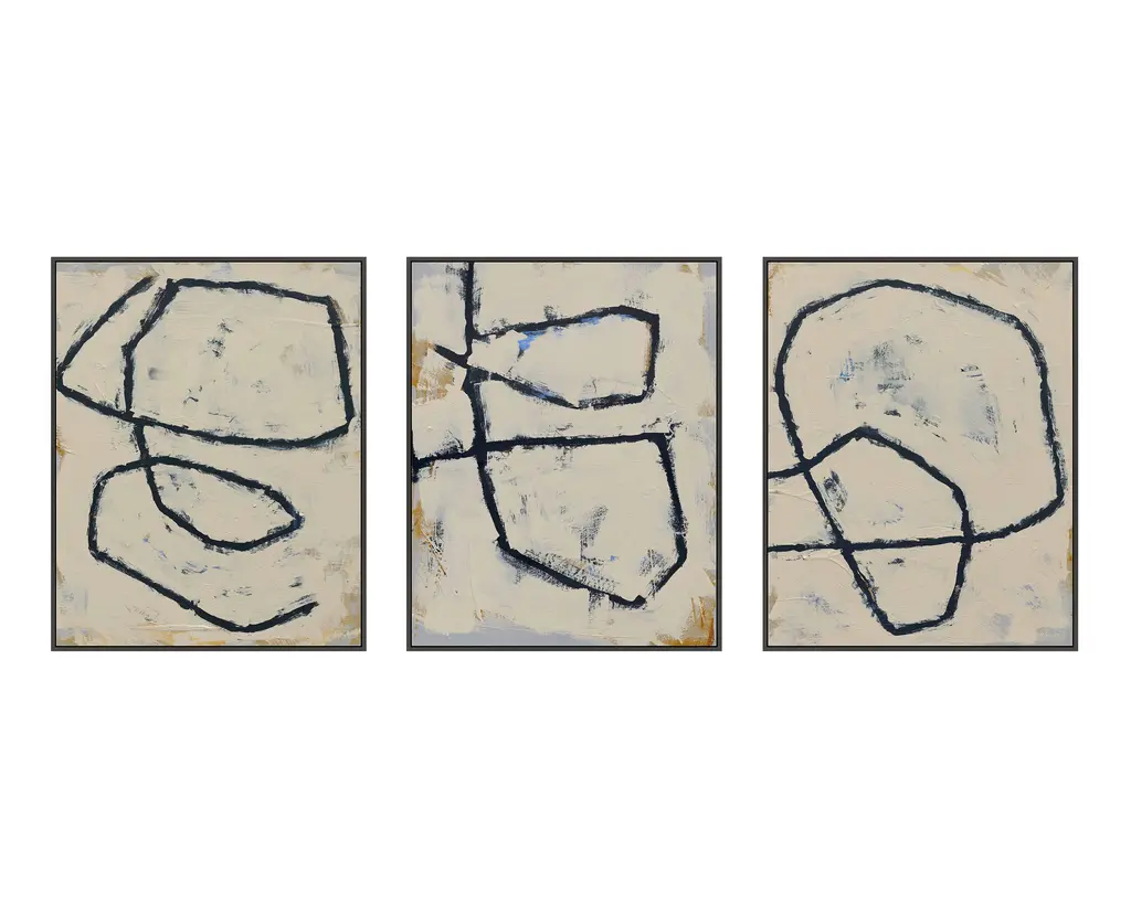 Abstract Line Painting Bold Blue Busy Grey Movement,3pc, Each 10 X 15