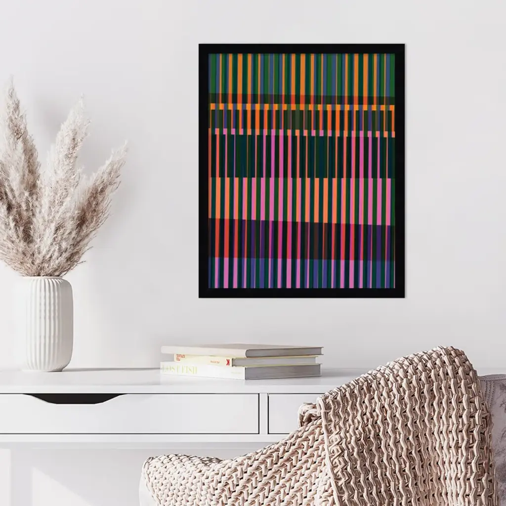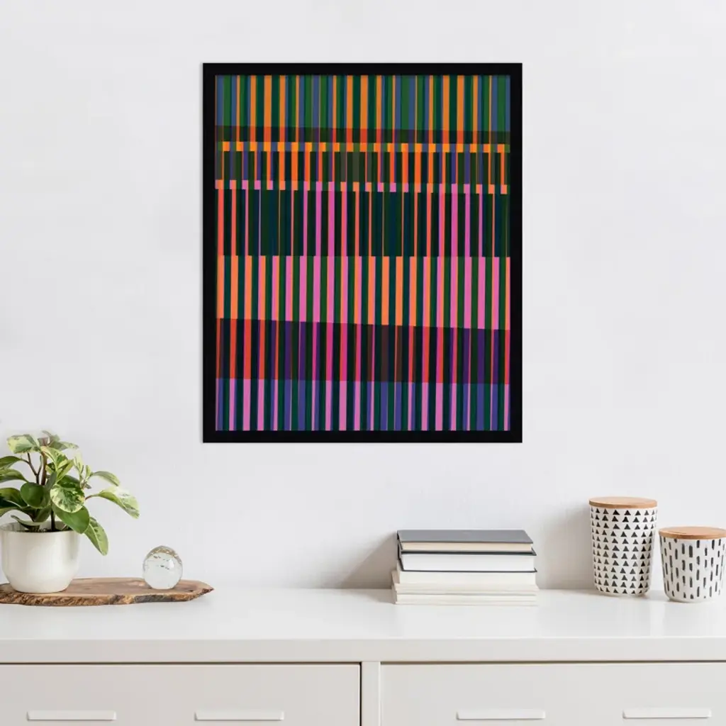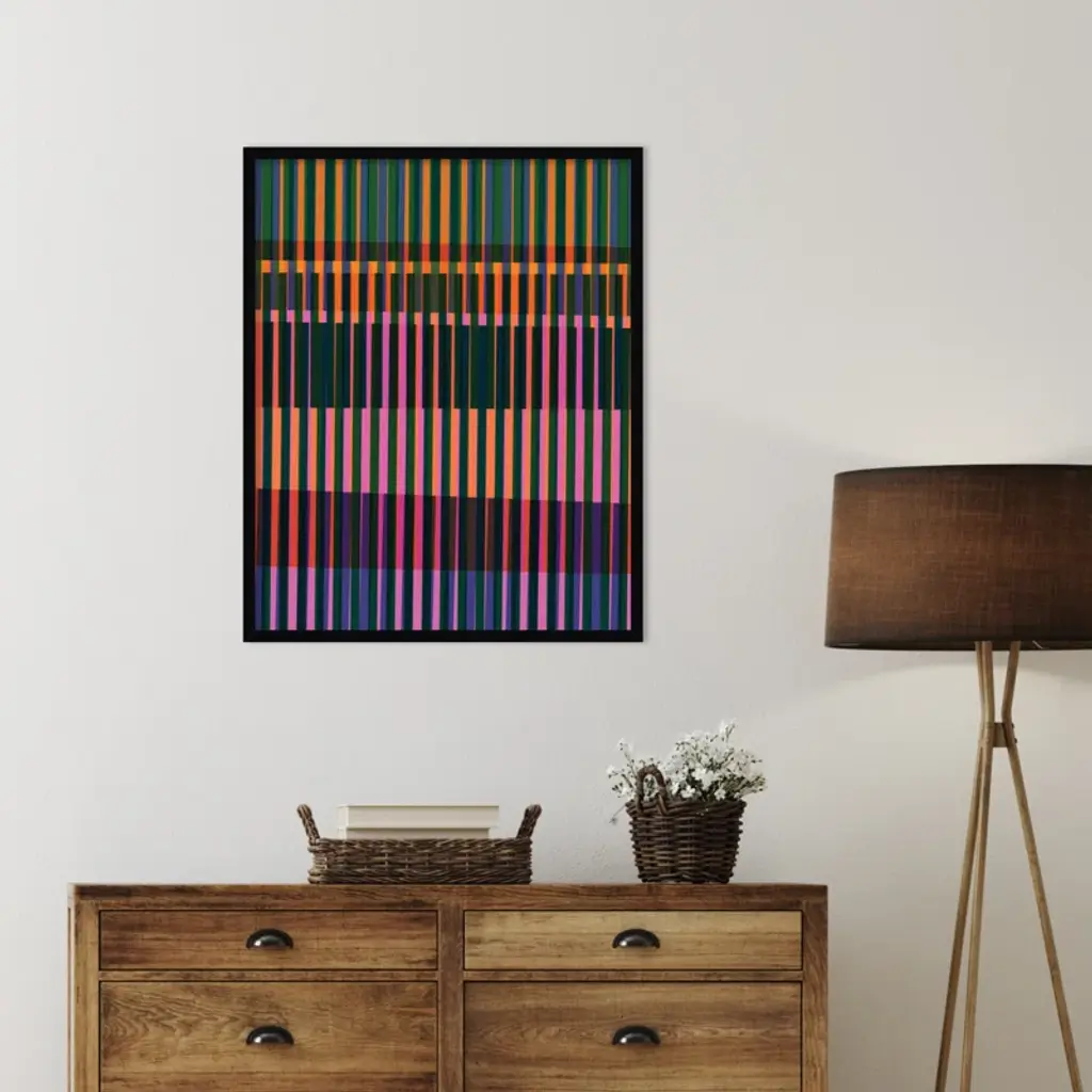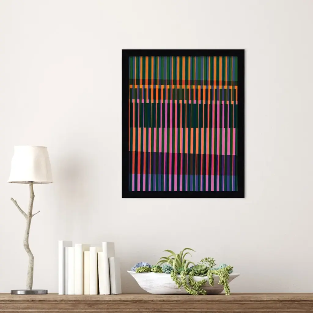 Art description: This piece is a visually captivating artwork that explores the concept of pattern through abstract and geometric forms. The artist skillfully combines various lines and blocky shapes to create a mesmerizing composition that engages the viewer's imagination. This framed art print was created by Beth Vassalo and printed in Madison, WI. The print is giclee printed using fade-resistant inks for picture-perfect detail and incredible depth of color and finished with a 100% real wood frame. Individually made using traditional custom framing techniques, it has the quality you would expect from your local frame shop. Features: Custom artwork details: Abstract lines 17 by Beth Vassalo. Artis bio: Beth Vassalo is an artist and photographer, specializing in geometric and abstract designs. She is inspired by shapes, bold colors, and a minimalist aesthetic. She lives in Washington, DC with her husband and three daughters. 100% Real wood frame details: The art is framed in the frame. Quality and authenticity: Prints are giclee printed using fade-resistant inks for picture-perfect detail and incredible depth of color. They are protected with a shatterproof sheet of gallery-quality acrylic, which resists UV rays and light damage better than traditional glass. The artwork is authentically licensed. Protective backing: Premium paper prints are permanently adhered to a rigid backer board to prevent rippling over time. Hassle-free hanging: Ready to hang for easy installation. All framed prints have a durable hanging wire attached to the back and a hanging hook and nail. Assembled in the USA: Each piece is assembled to order in Madison, WI USA. For home or commercial use: Because of our attention to detail and focus on artistry, architects, interior designers, and homeowners alike choose this framed art print to create beautiful living spaces.