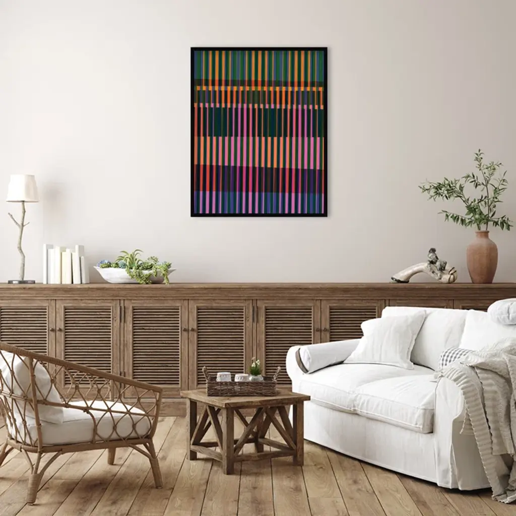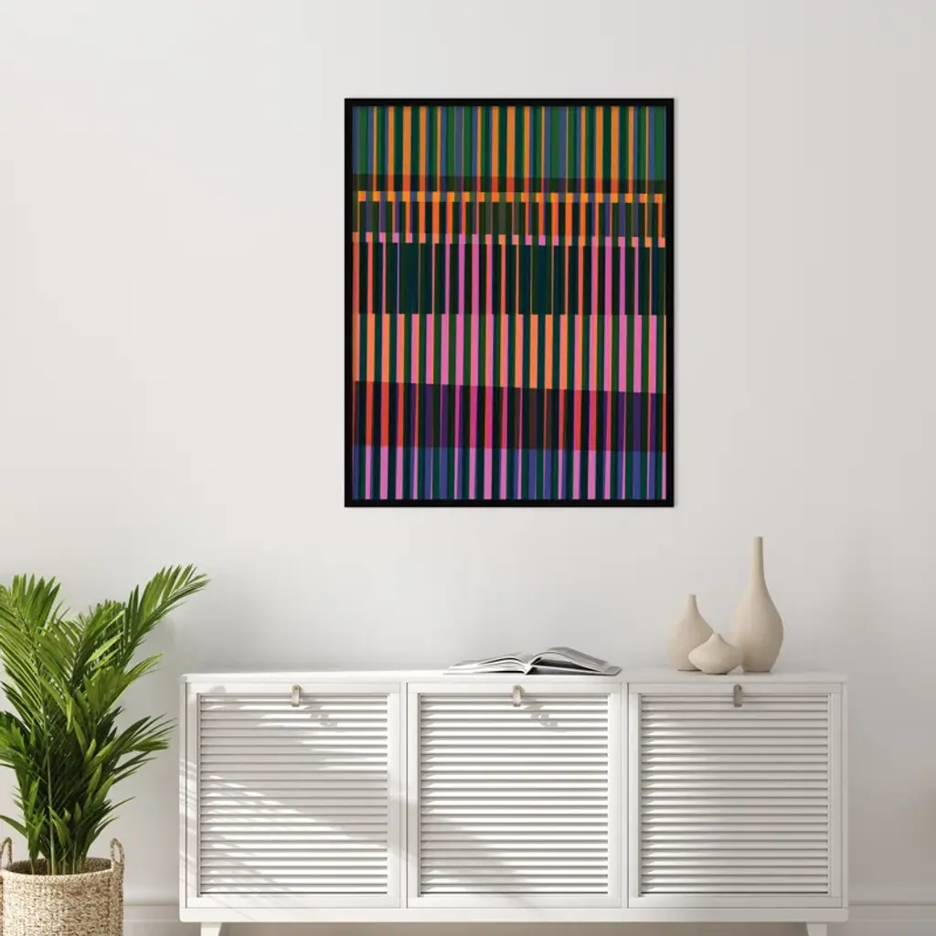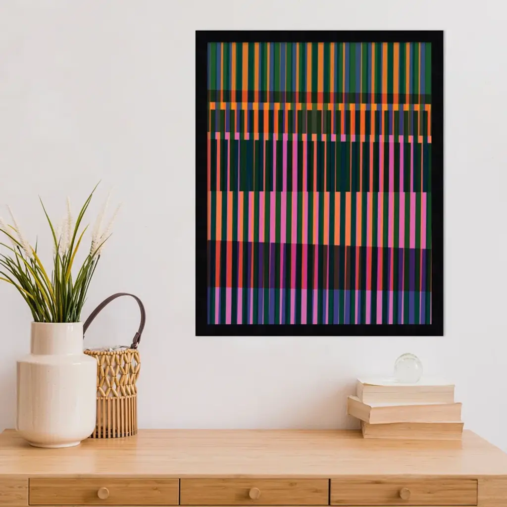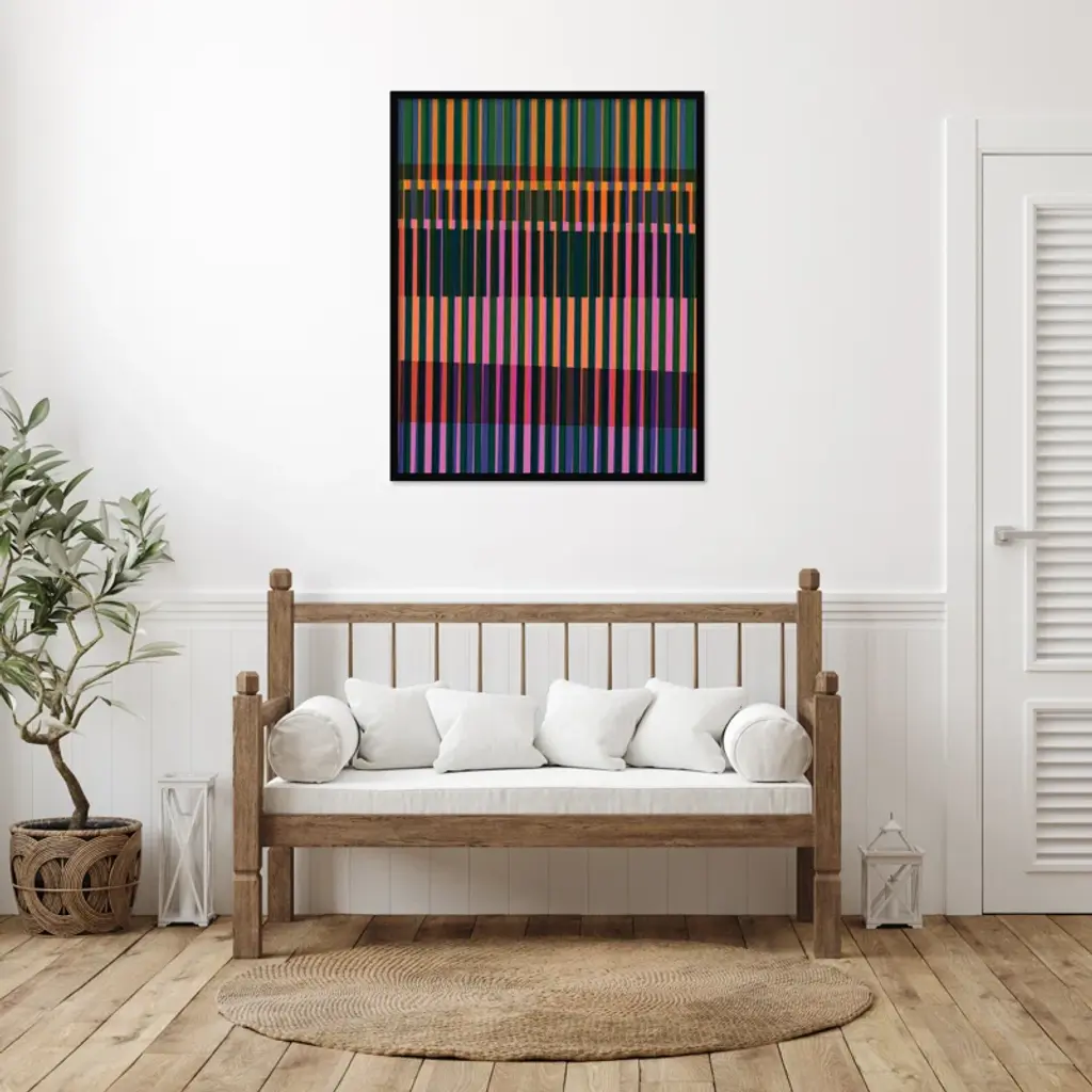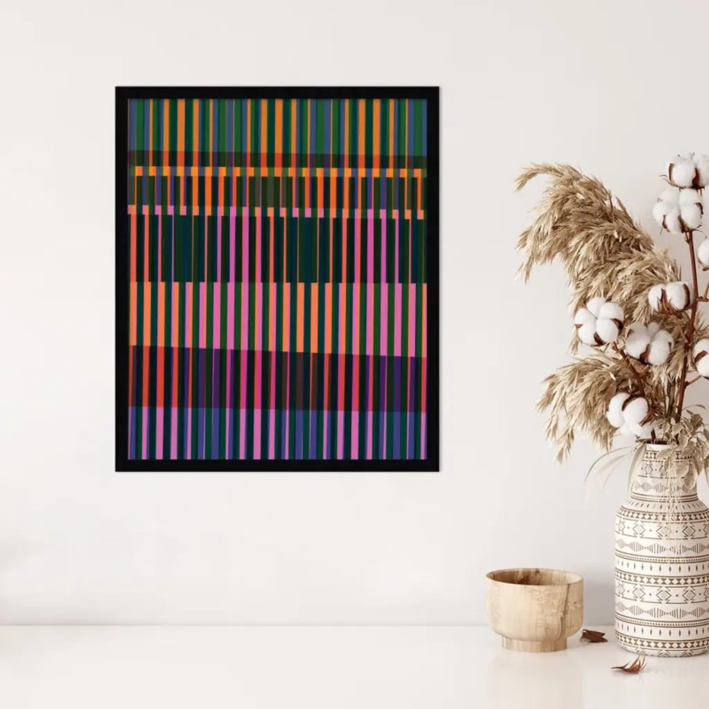 Art description: This piece is a visually captivating artwork that explores the concept of pattern through abstract and geometric forms. The artist skillfully combines various lines and blocky shapes to create a mesmerizing composition that engages the viewer's imagination. This framed art print was created by Beth Vassalo and printed in Madison, WI. The print is giclee printed using fade-resistant inks for picture-perfect detail and incredible depth of color and finished with a 100% real wood frame. Individually made using traditional custom framing techniques, it has the quality you would expect from your local frame shop. Features: Custom artwork details: Abstract lines 17 by Beth Vassalo. Artis bio: Beth Vassalo is an artist and photographer, specializing in geometric and abstract designs. She is inspired by shapes, bold colors, and a minimalist aesthetic. She lives in Washington, DC with her husband and three daughters. 100% Real wood frame details: The art is framed in the frame. Quality and authenticity: Prints are giclee printed using fade-resistant inks for picture-perfect detail and incredible depth of color. They are protected with a shatterproof sheet of gallery-quality acrylic, which resists UV rays and light damage better than traditional glass. The artwork is authentically licensed. Protective backing: Premium paper prints are permanently adhered to a rigid backer board to prevent rippling over time. Hassle-free hanging: Ready to hang for easy installation. All framed prints have a durable hanging wire attached to the back and a hanging hook and nail. Assembled in the USA: Each piece is assembled to order in Madison, WI USA. For home or commercial use: Because of our attention to detail and focus on artistry, architects, interior designers, and homeowners alike choose this framed art print to create beautiful living spaces.