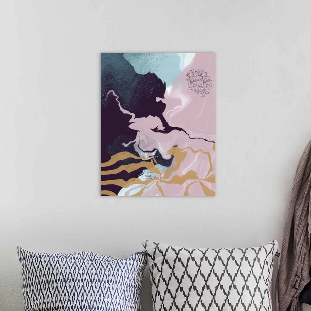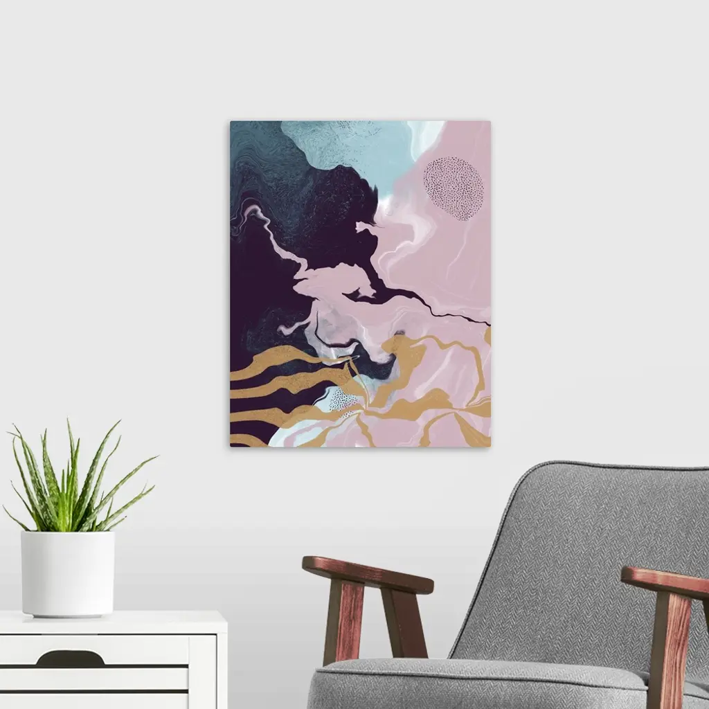 Abstract Liquid Artwork In Gold, Teal, Pink And Purple