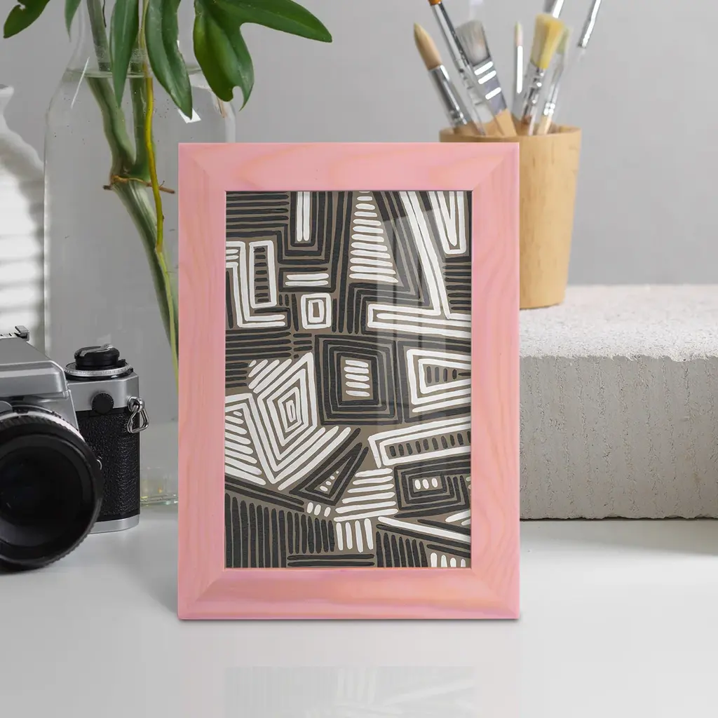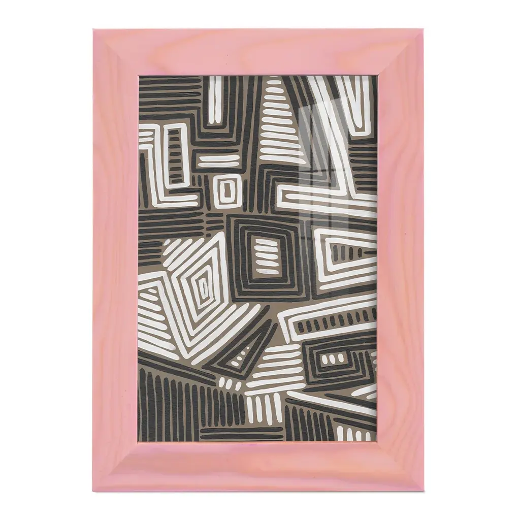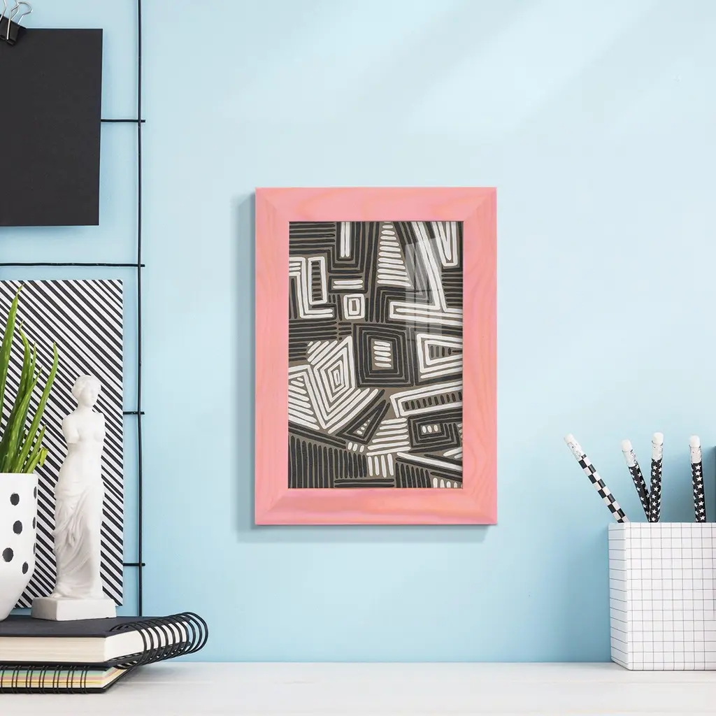 Abstract Maze II -EZ SWITCH Framed Print w/glass-Cherry Red A delightful, framed print. Featuring a solid wood frame with real wood glass. This premium print is giclee quality. In addition, every frame features a removable back and table top stand. This allows you to change your art in the future or to just stand the art on a table for a new look. We are sure you'll enjoy our new series of EZ SWITCH Framed Art. Solid Wood Frame Real Glass Removable / Replaceable Art Built in Tabletop Stand Sizes range from 4x6 up to 12x15 - buy just one or pair them up as sets as you see fit.