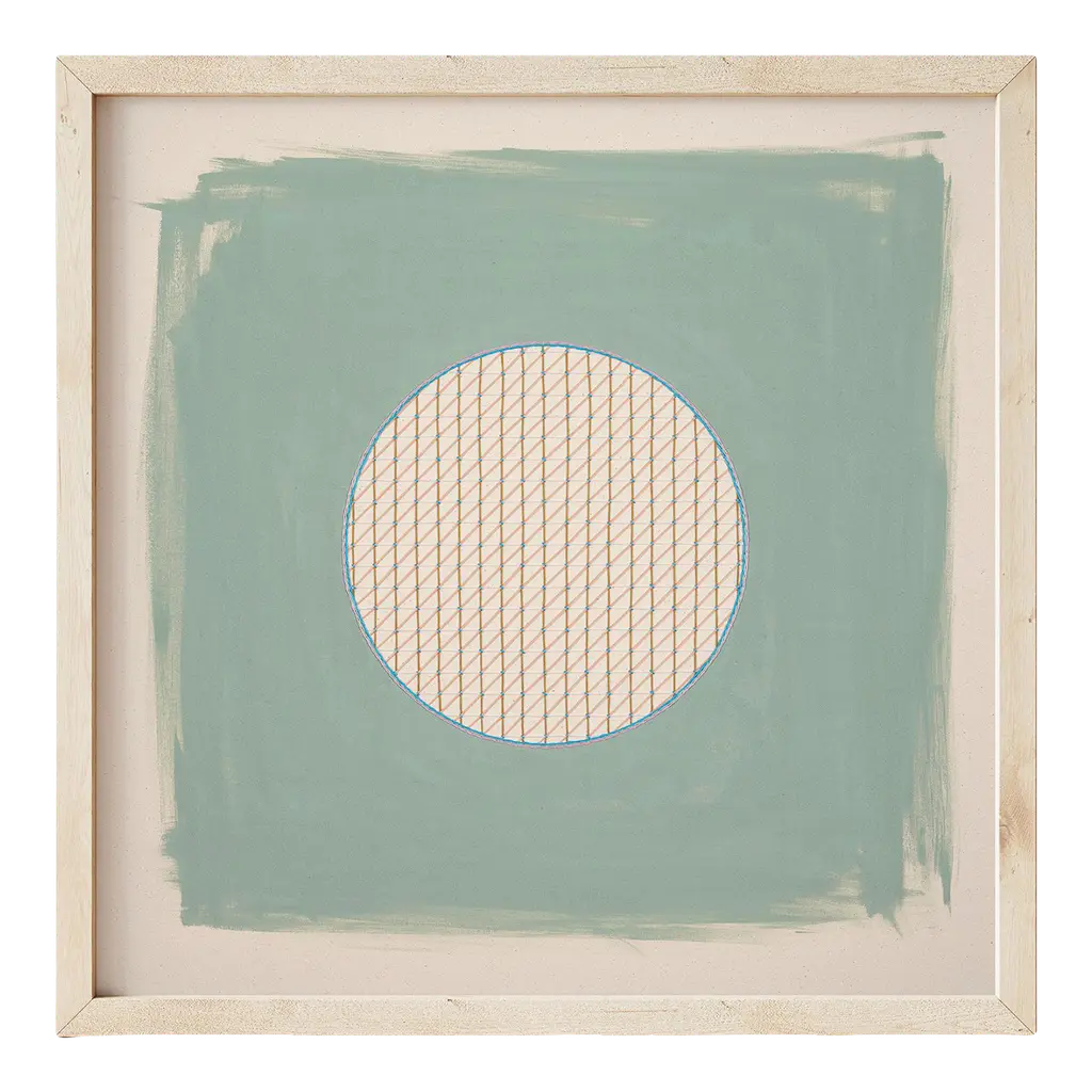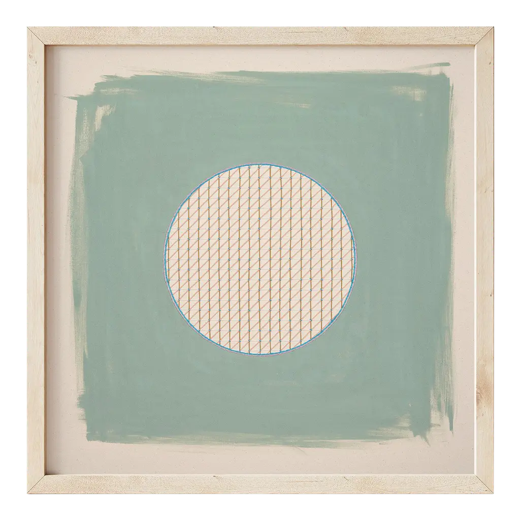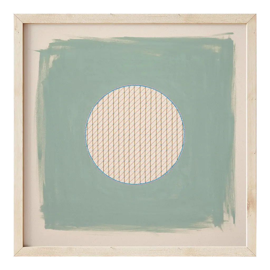 Pink Dust/Cornflower' Fine Art Print by Emily Keating Snyder Print itself is 30 x 38 in. and framed in a light wood frame with UV-shield plexiglass (approx. 31.25" x 39.25" overall) Printed on archival matte paper (no physical embroidery is present in the print) Note: Colors may appear slightly different in person due to screen variations. About the Artist: Emily Keating Snyder incorporates embroidery into her colorful minimalist abstract paintings. Her archival fine art prints visually highlight the dimensional quality of the originals. Emily's work has been featured by Anthropologie, Real Simple, Emily Henderson, Clever and Parachute Home.