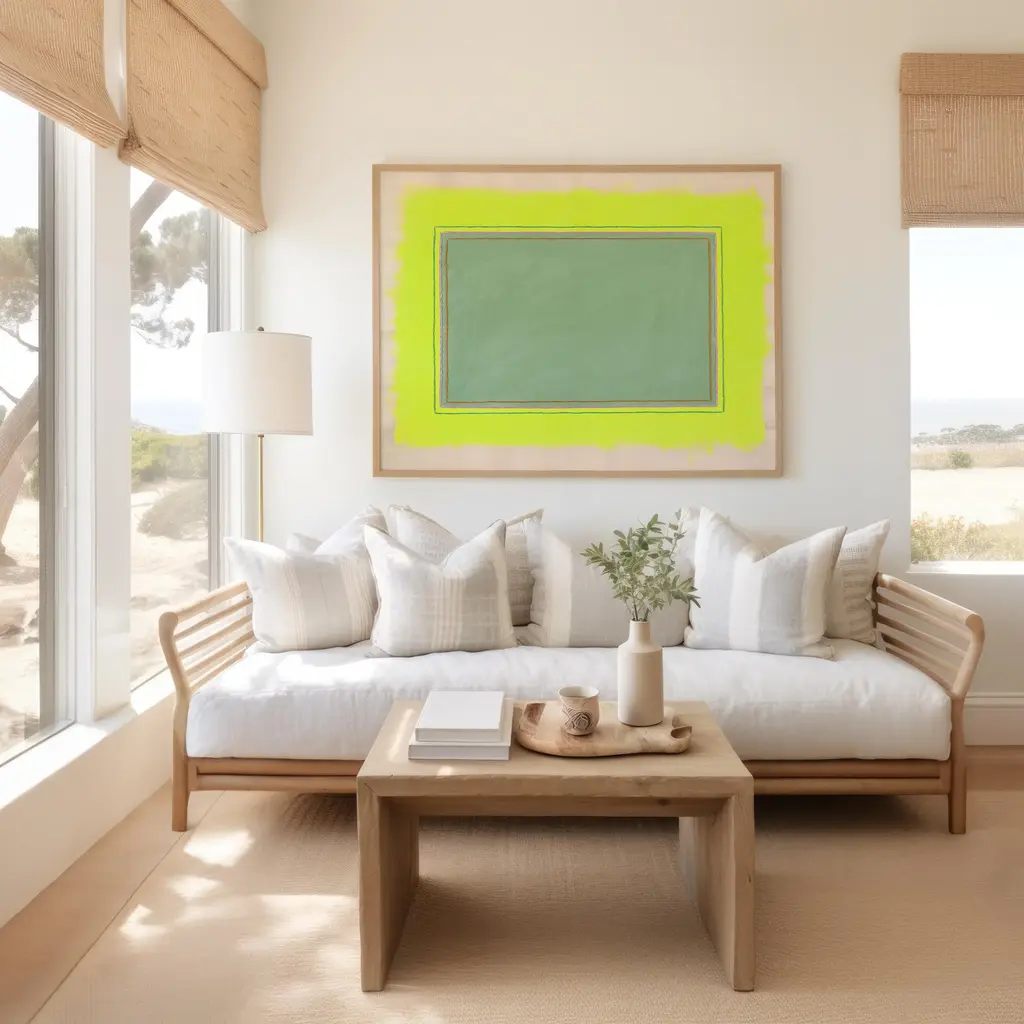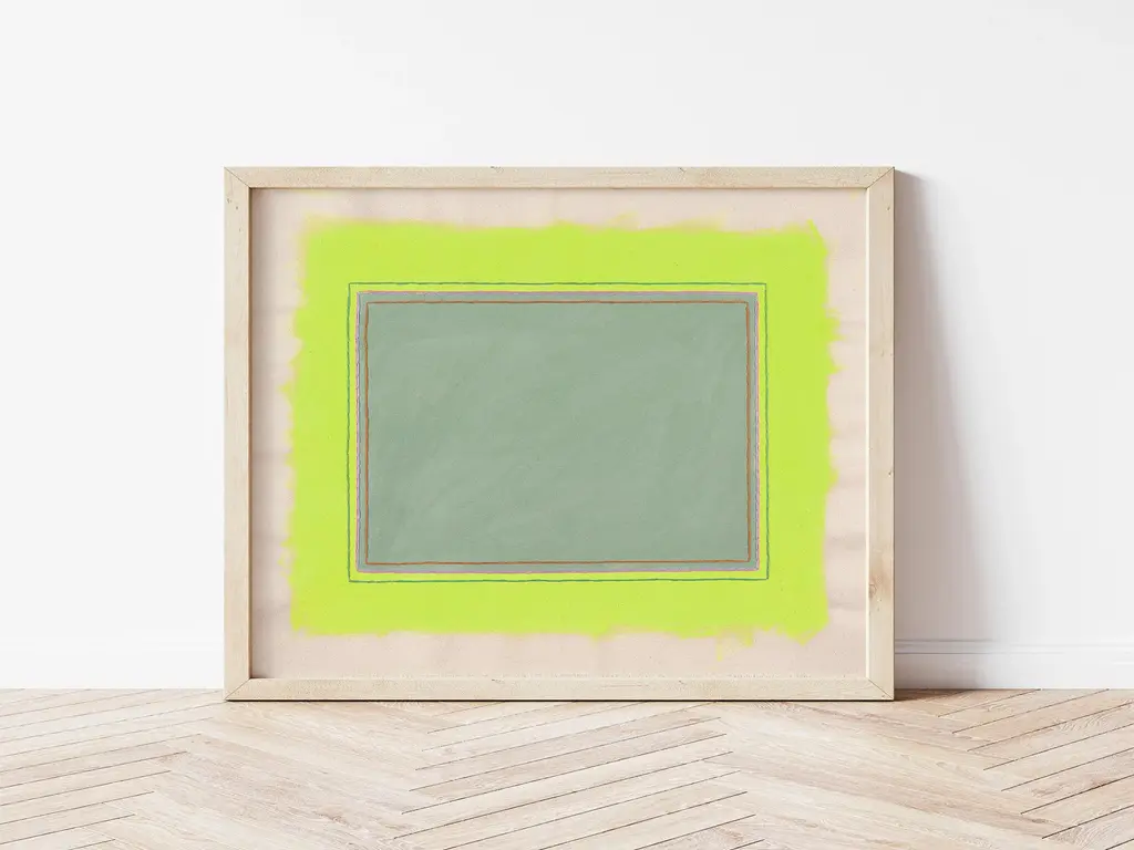 Abstract Modern Sage Green And Neon Fine Art Print, 30 X 38 Print In Wood Frame