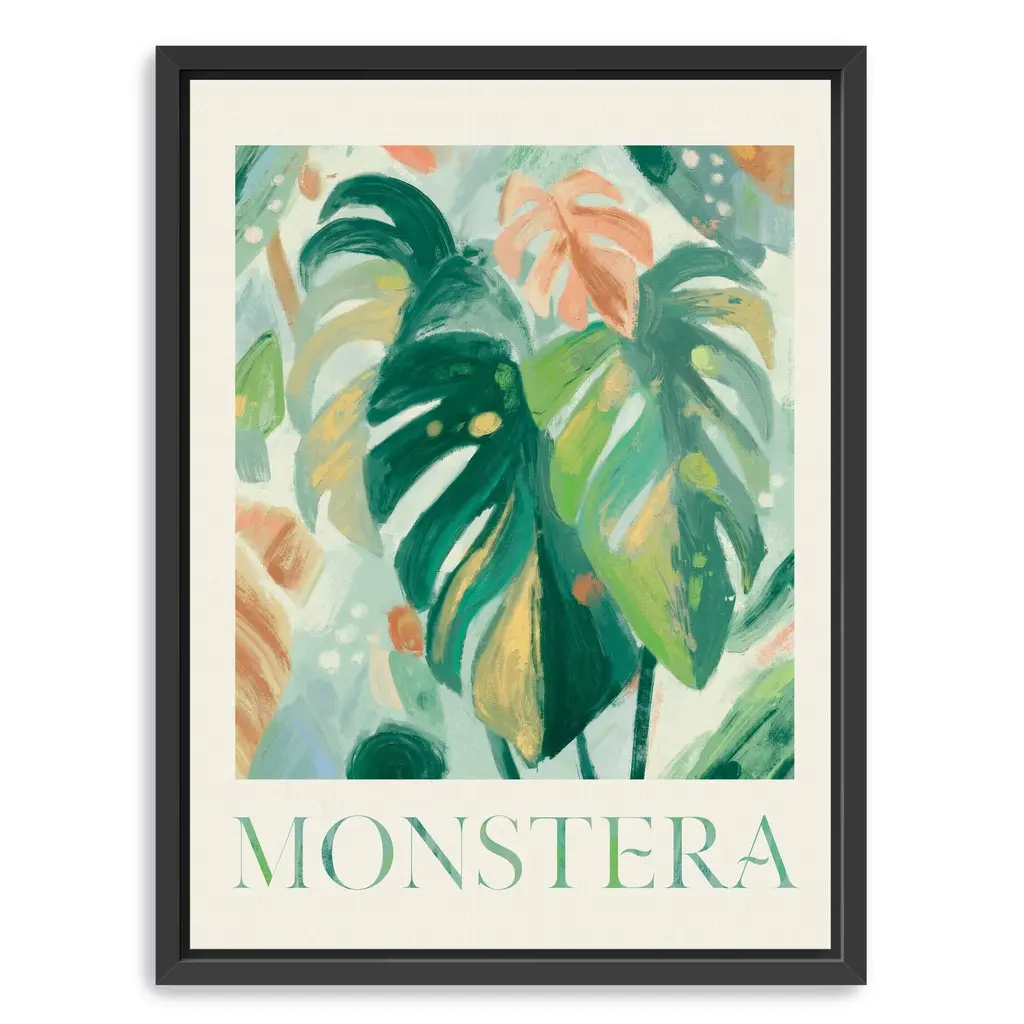 Abstract Monstera Canvas Giclee - Framed / Dark Walnut / 24x32