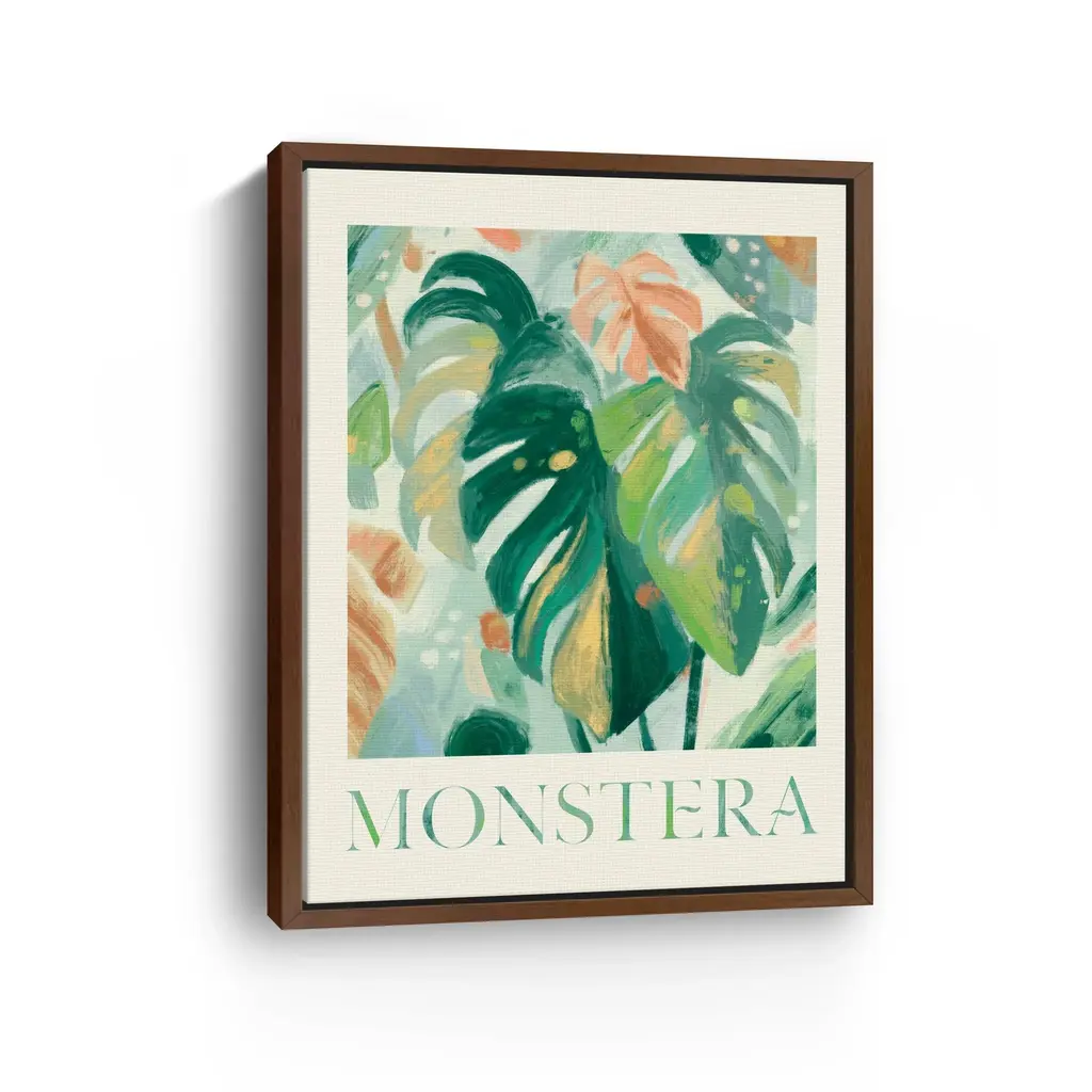 Abstract Monstera Canvas Giclee - Framed / Dark Walnut / 30x40