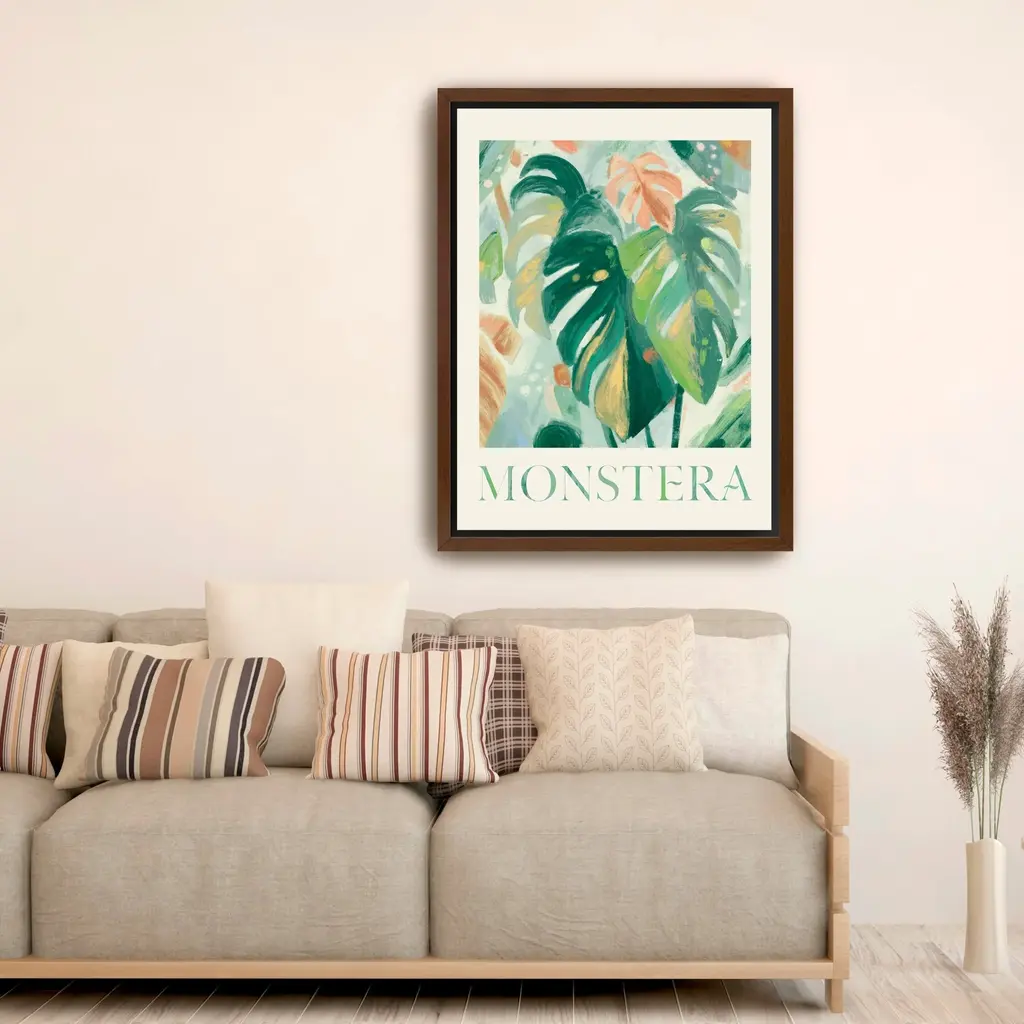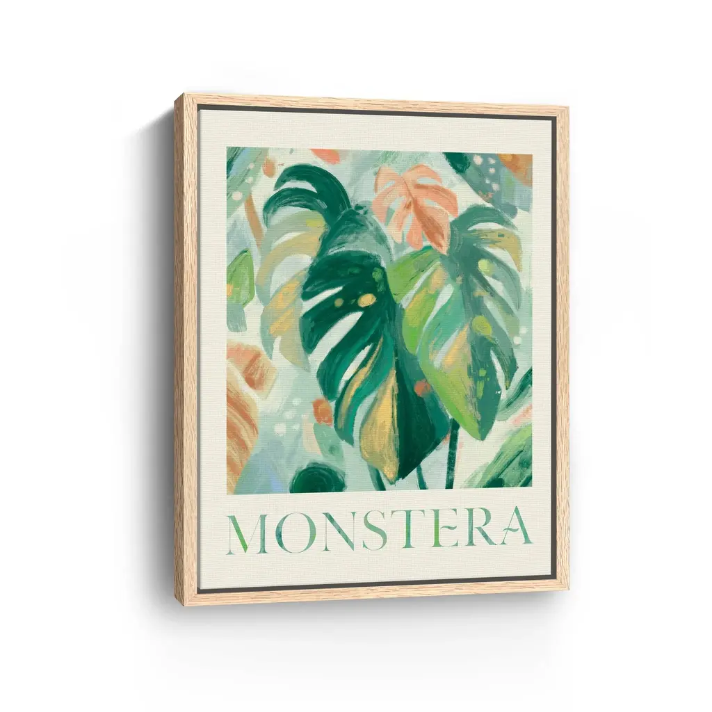Abstract Monstera Canvas Giclee - Framed / Oak / 30x40