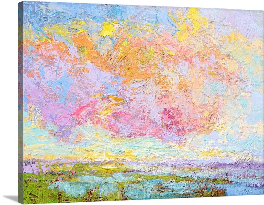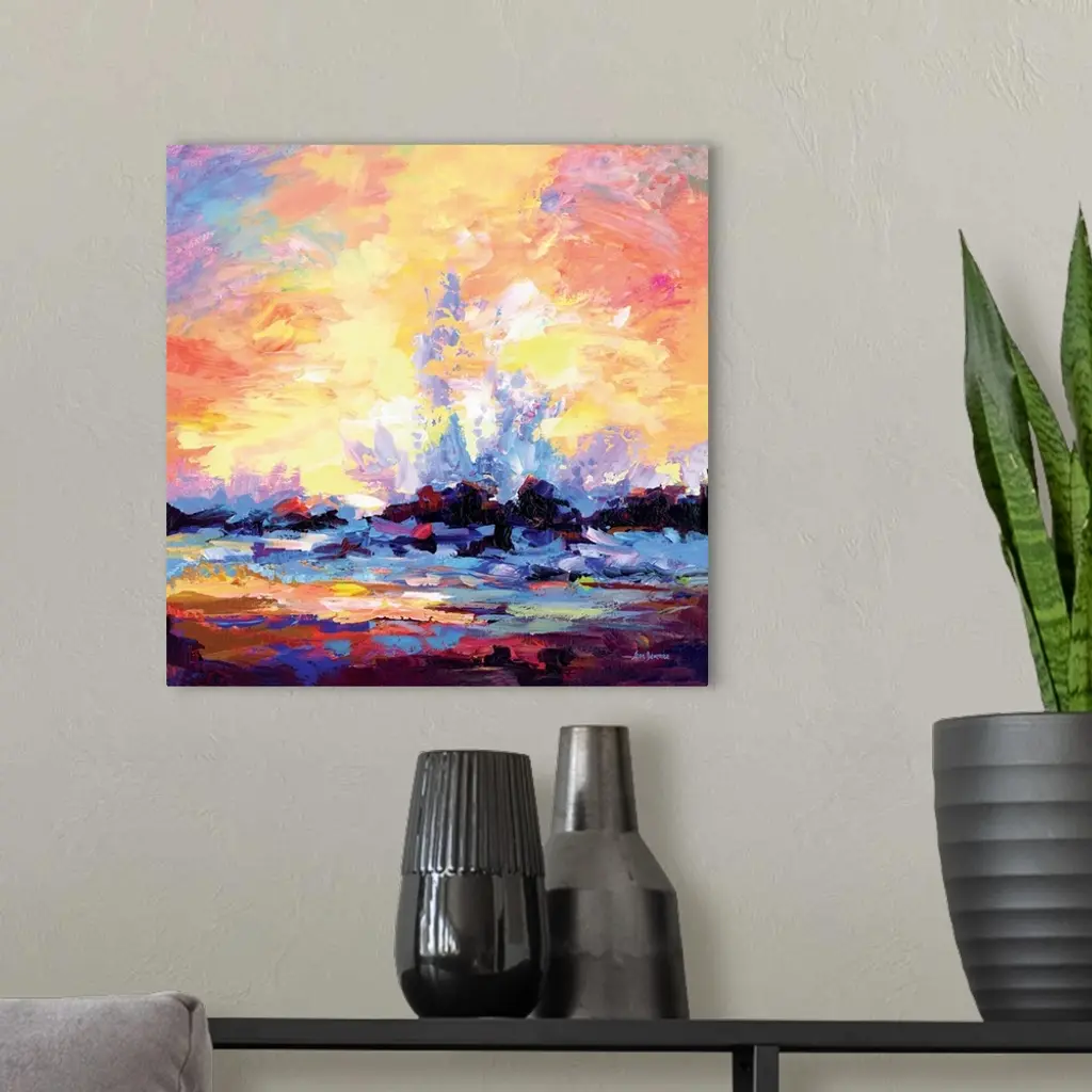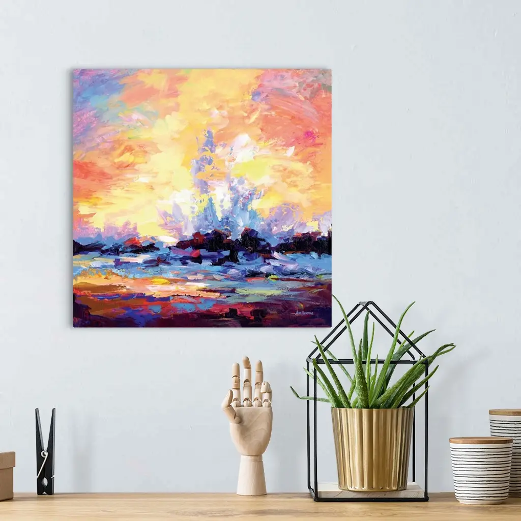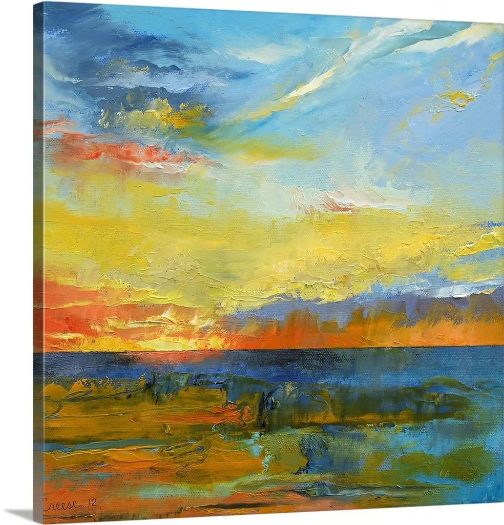 Beautiful abstract painting of waves crashing on the rocks at coast.