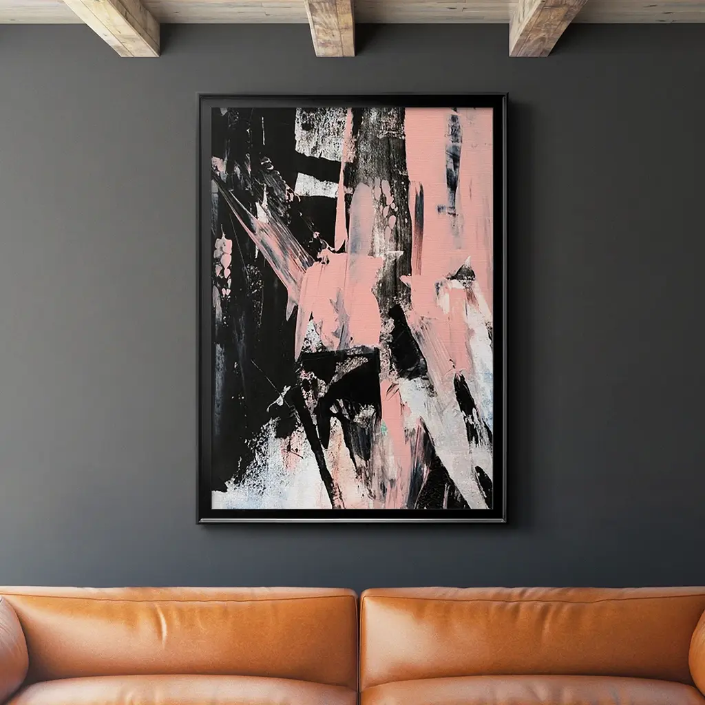"ART DESCRIPTION: This framed art print was created by Iris Lehnhardt and printed in Madison, WI. The print is giclee printed using fade-resistant inks for picture-perfect detail and incredible depth of color and finished with a 100% real wood frame. Individually made using traditional custom framing techniques, it has the quality you would expect from your local frame shop. Features: CUSTOM ARTWORK DETAILS: Abstract Painting XXI by Iris Lehnhardt. 100% REAL WOOD FRAME DETAILS: The art is framed in the Svelte frame which measures 1 in. wide and stands 1 in. off the wall. QUALITY AND AUTHENTICITY: Prints are giclee printed using fade-resistant inks for picture-perfect detail and incredible depth of color. They are protected with a shatterproof sheet of gallery-quality acrylic, which resists UV rays and light damage better than traditional glass. The artwork is authentically licensed. PROTECTIVE BACKING: Premium paper prints are permanently adhered to a rigid backer board to prevent rippling over time. HASSLE-FREE HANGING: Ready to hang for easy installation. All framed prints have a durable hanging wire attached to the back and a hanging hook and nail. ASSEMBLED IN THE USA: Each piece is assembled to order in Madison, WI USA. FOR HOME OR COMMERCIAL USE: Because of our attention to detail and focus on artistry, architects, interior designers, and homeowners alike choose this framed art print to create beautiful living spaces."